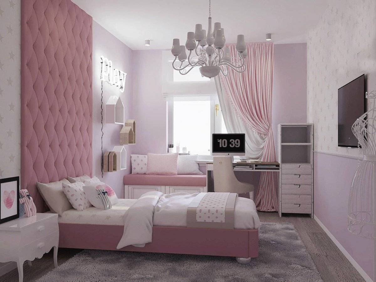 10. Спальня для девочки в серо розовых тонах