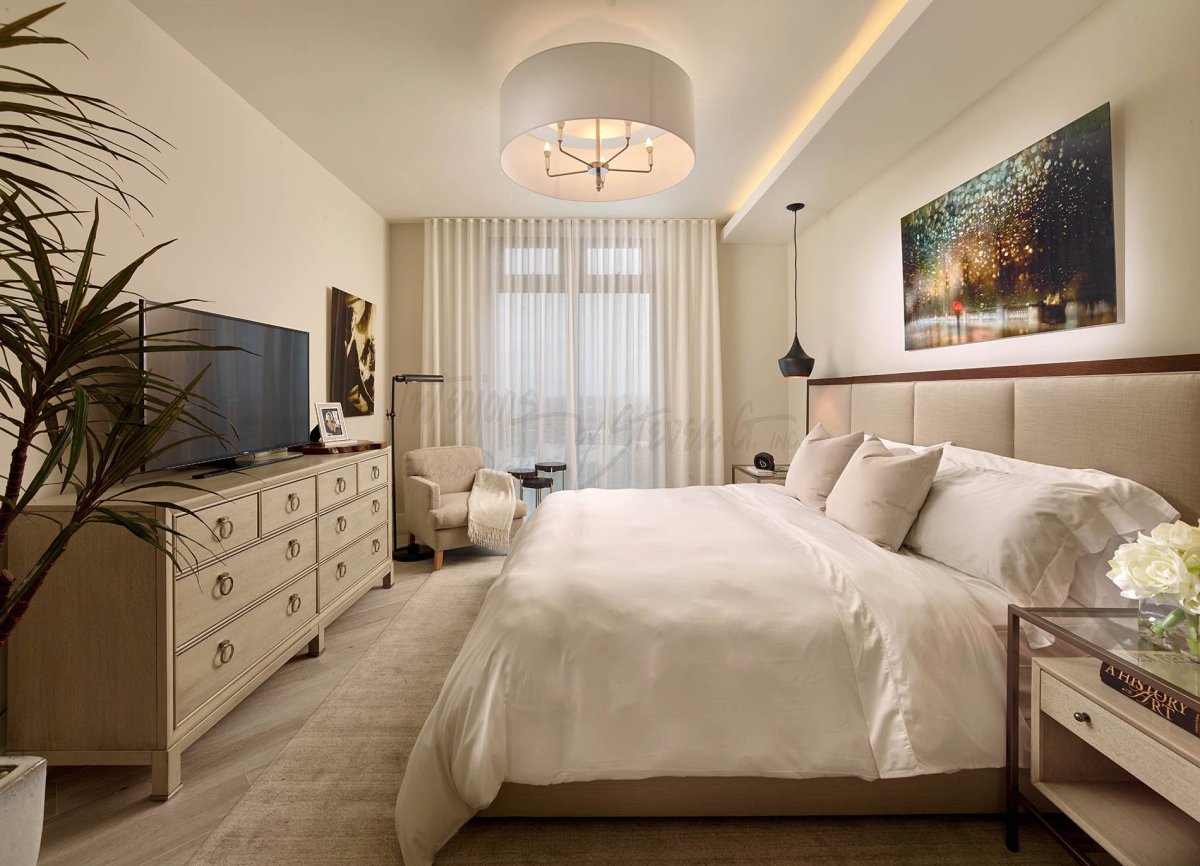30. Современная спальня с телевизором и комодом