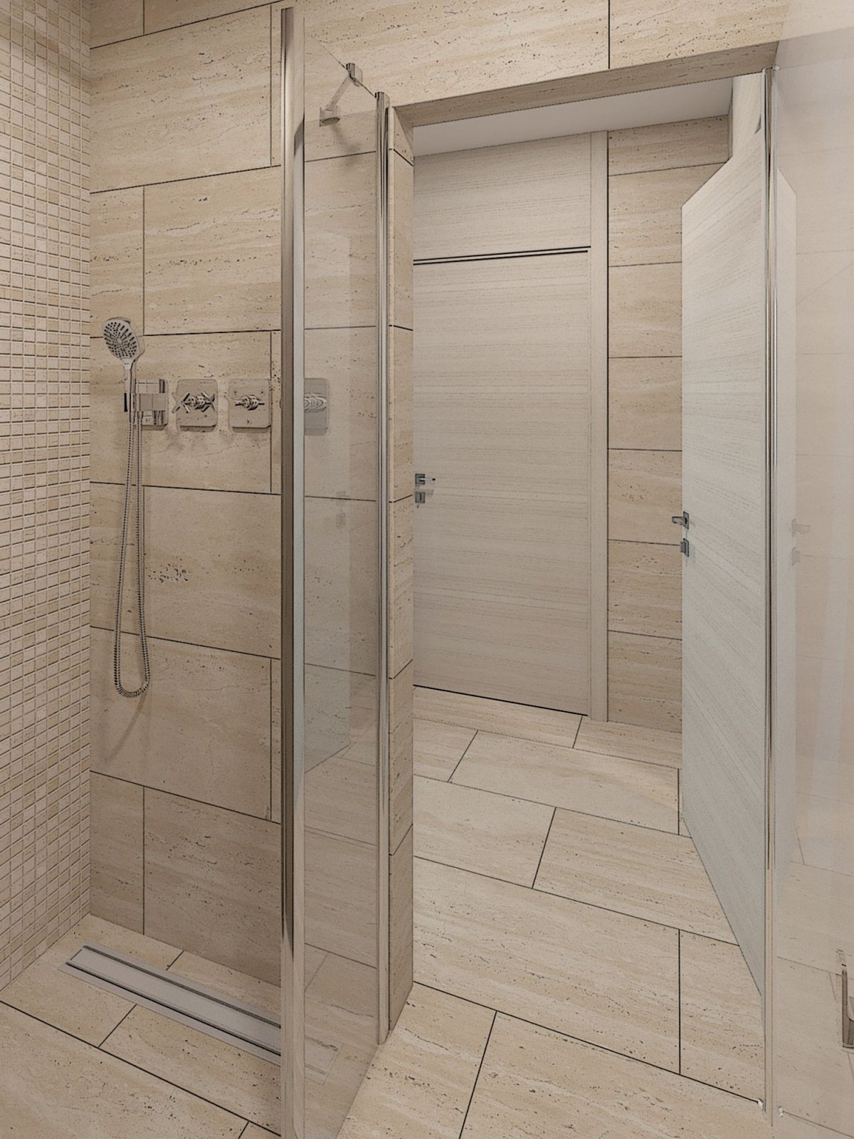 22. Сауна и душевая из плитки в доме
