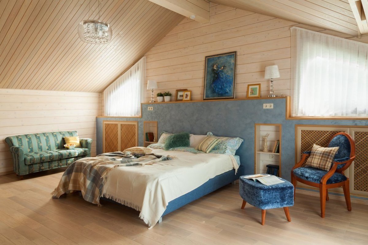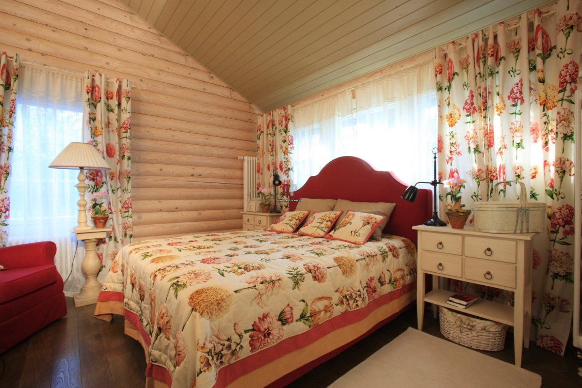 21. Спальня в брусовом доме в стиле Прованс
