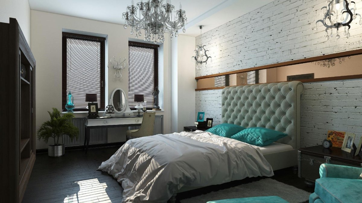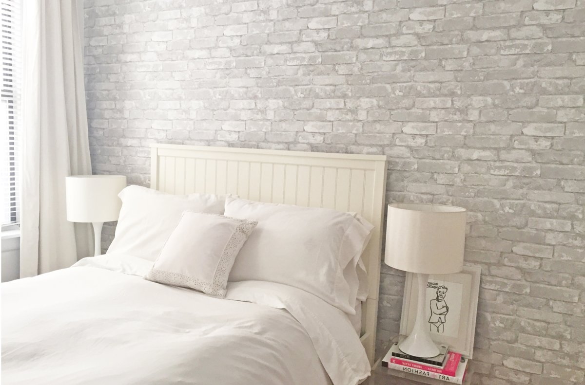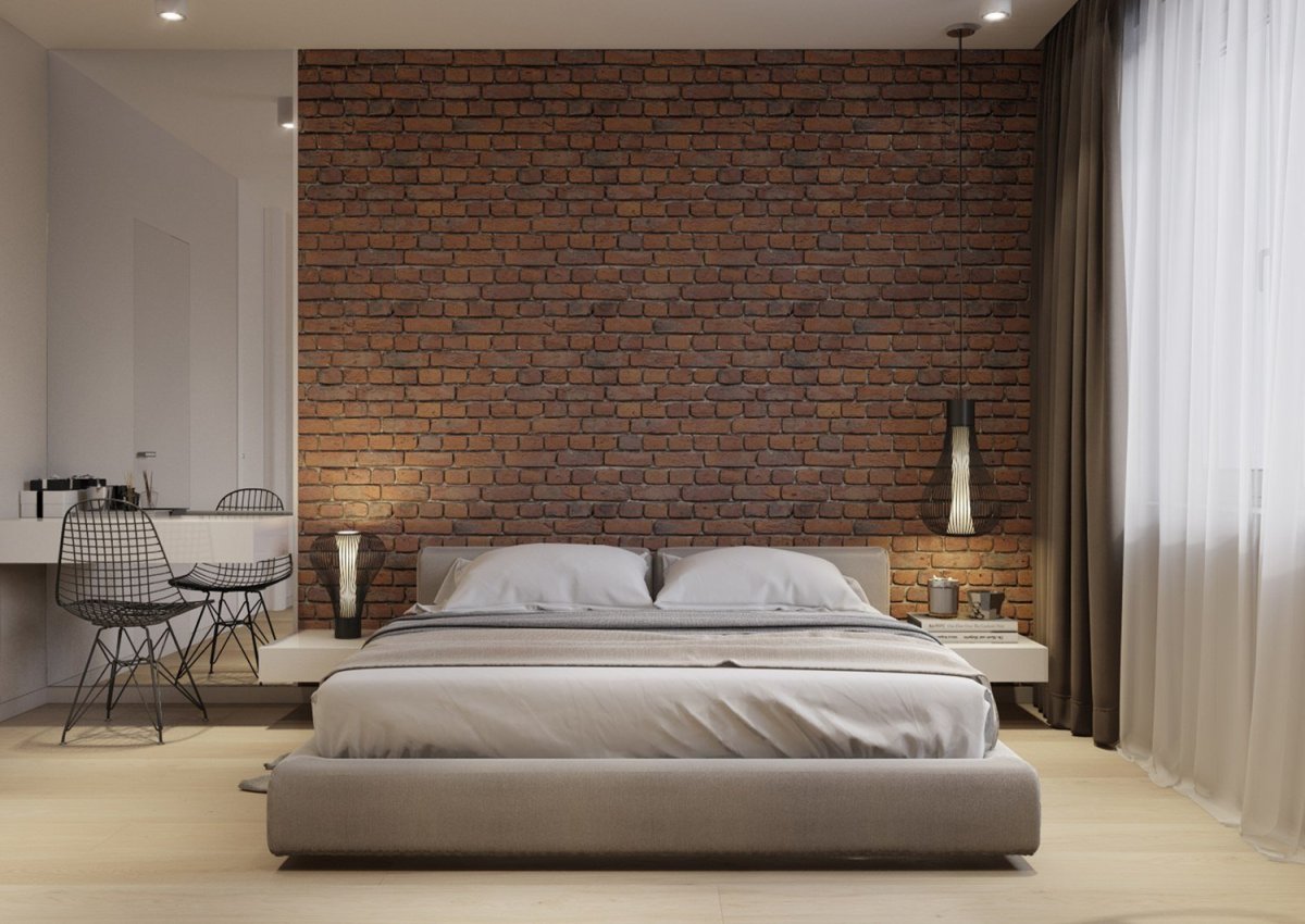 61. Спальня в скандинавском стиле с кирпичной стеной