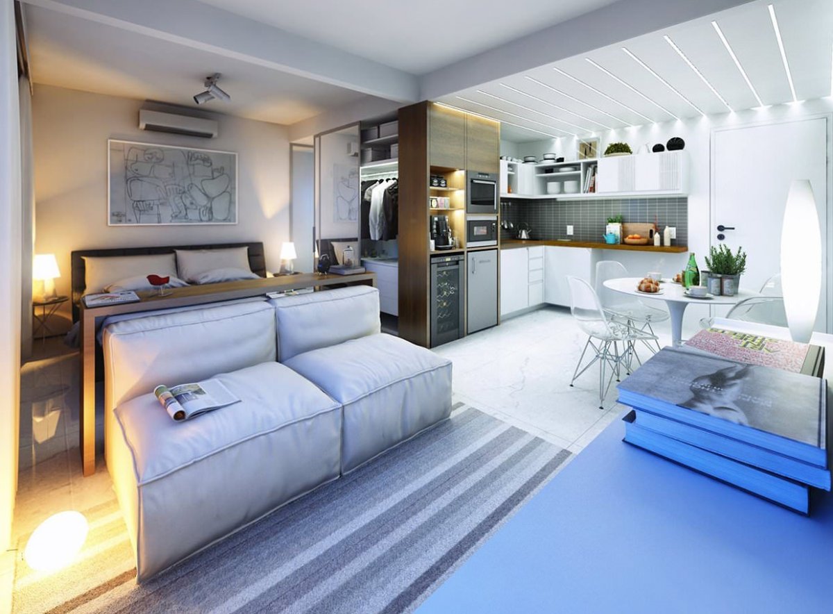 34. Интерьер однокомнатной квартиры-студии 18 кв.м