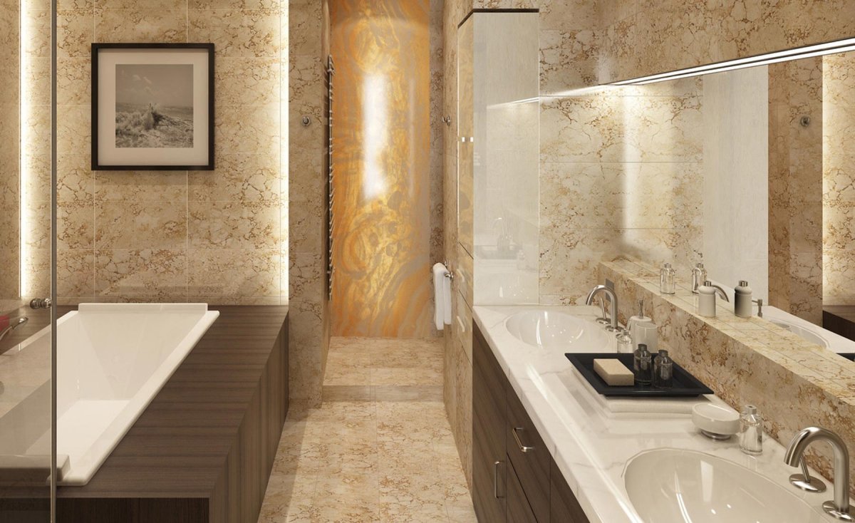 34. Венецианская штукатурка под мрамор в ванной комнате