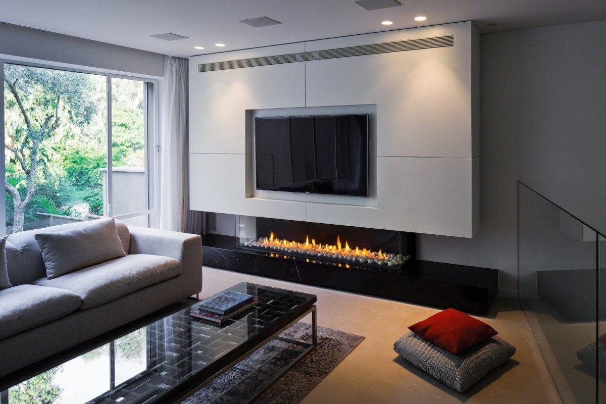 20. Камин в стене под телевизором