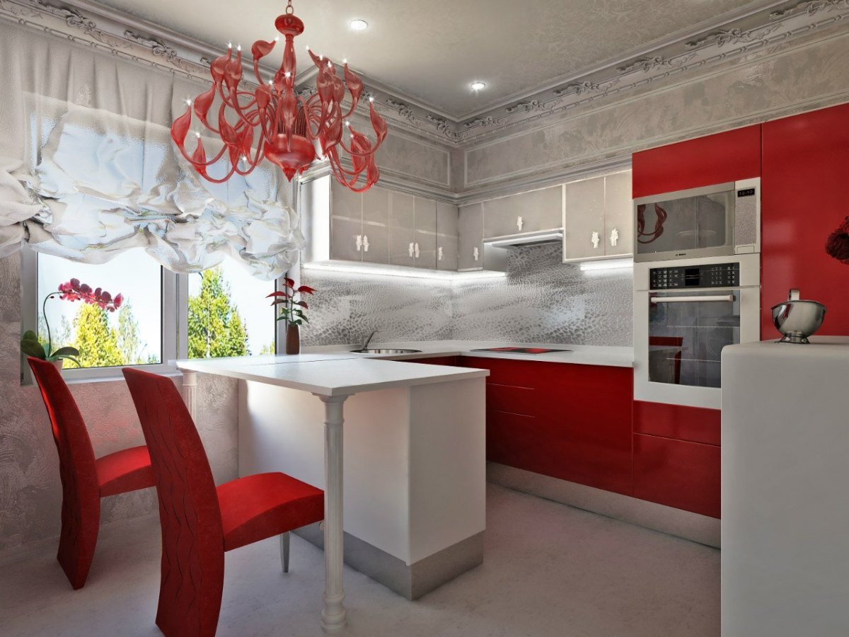 17. Интерьер маленькой кухни в Красном цвете
