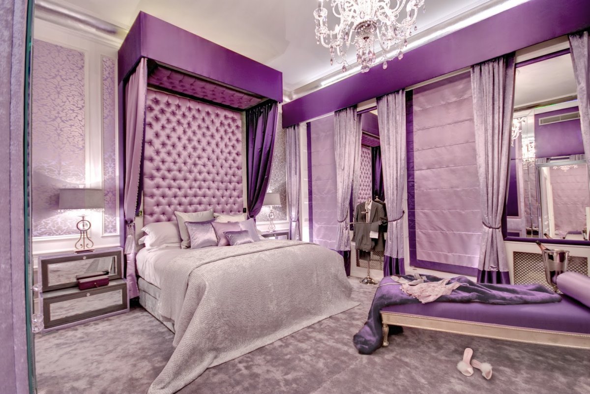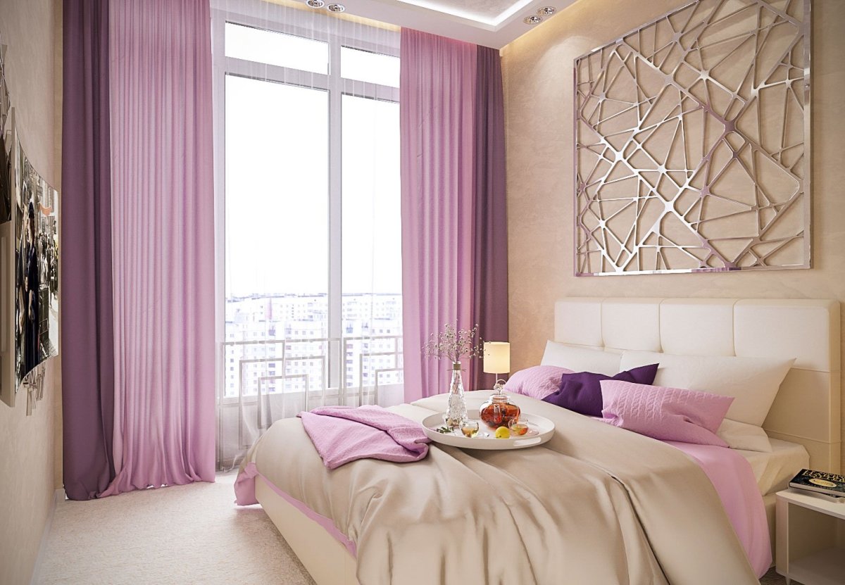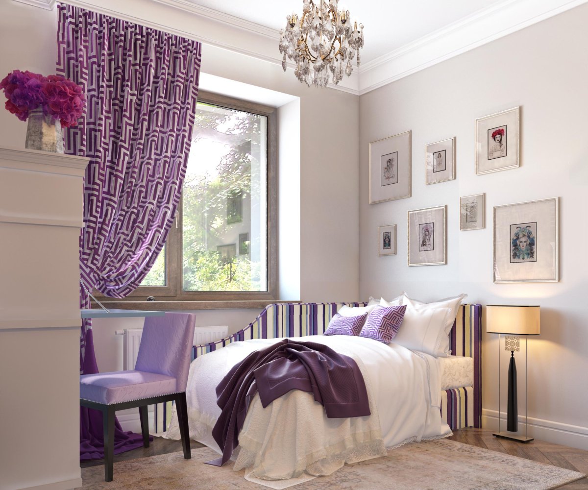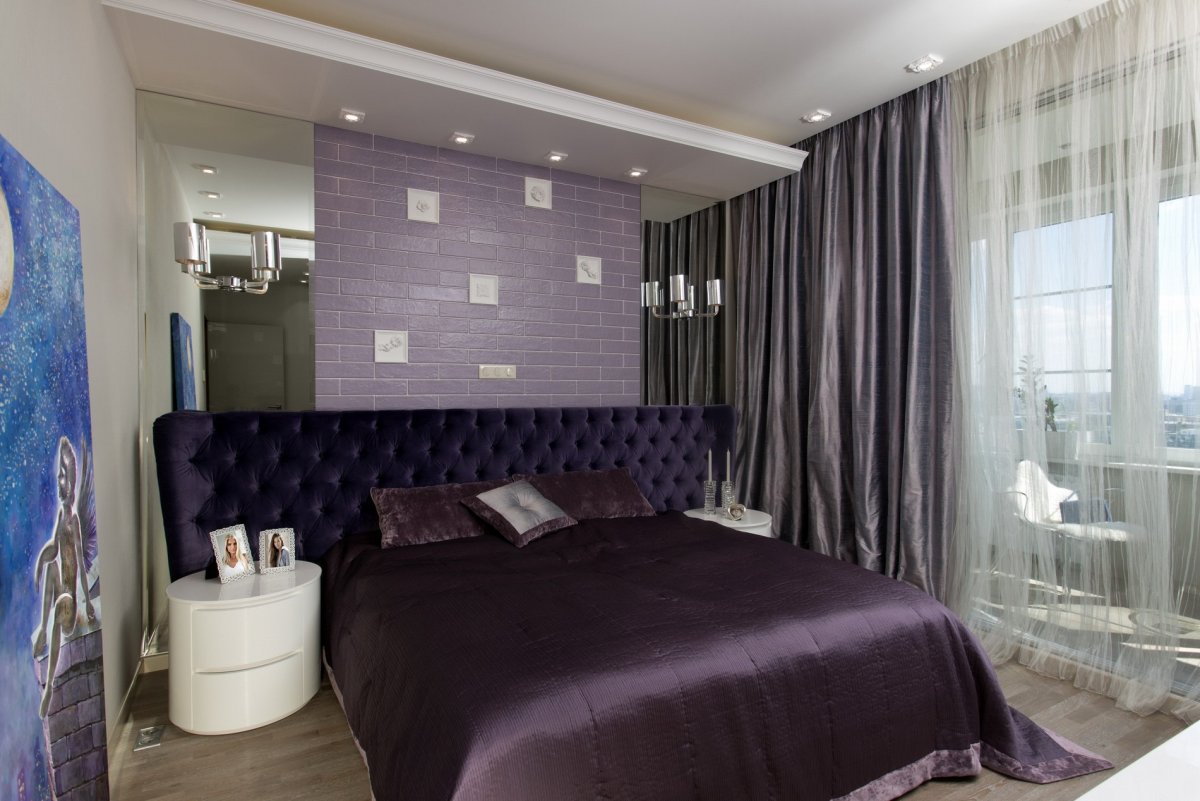 13. Стиль Кантри в интерьере спальни фиолетовый