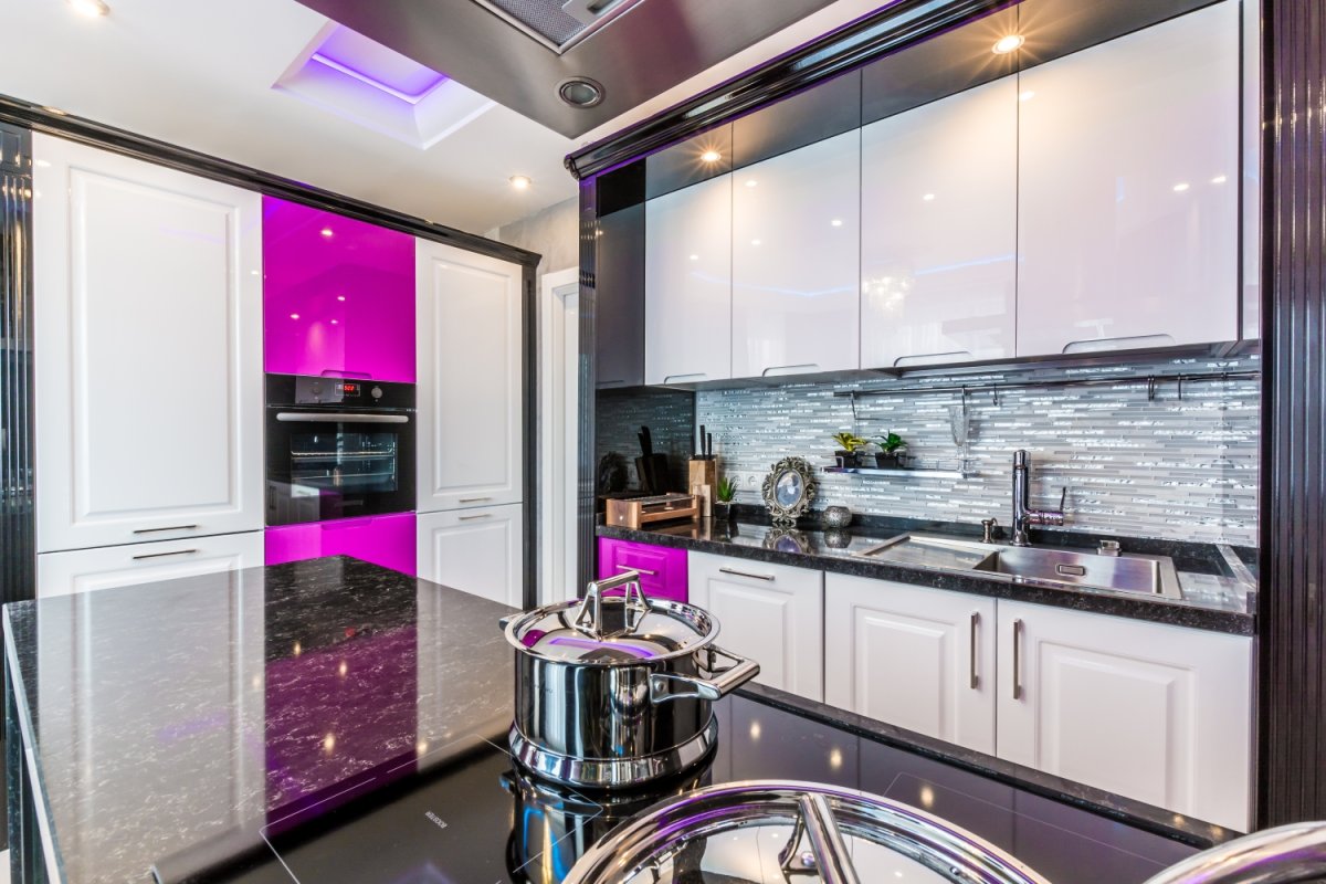 36. Кухня с фиолетовой подсветкой