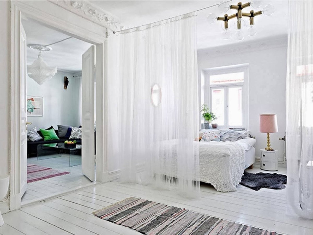 17. Легкие перегородки для зонирования комнаты от шторы
