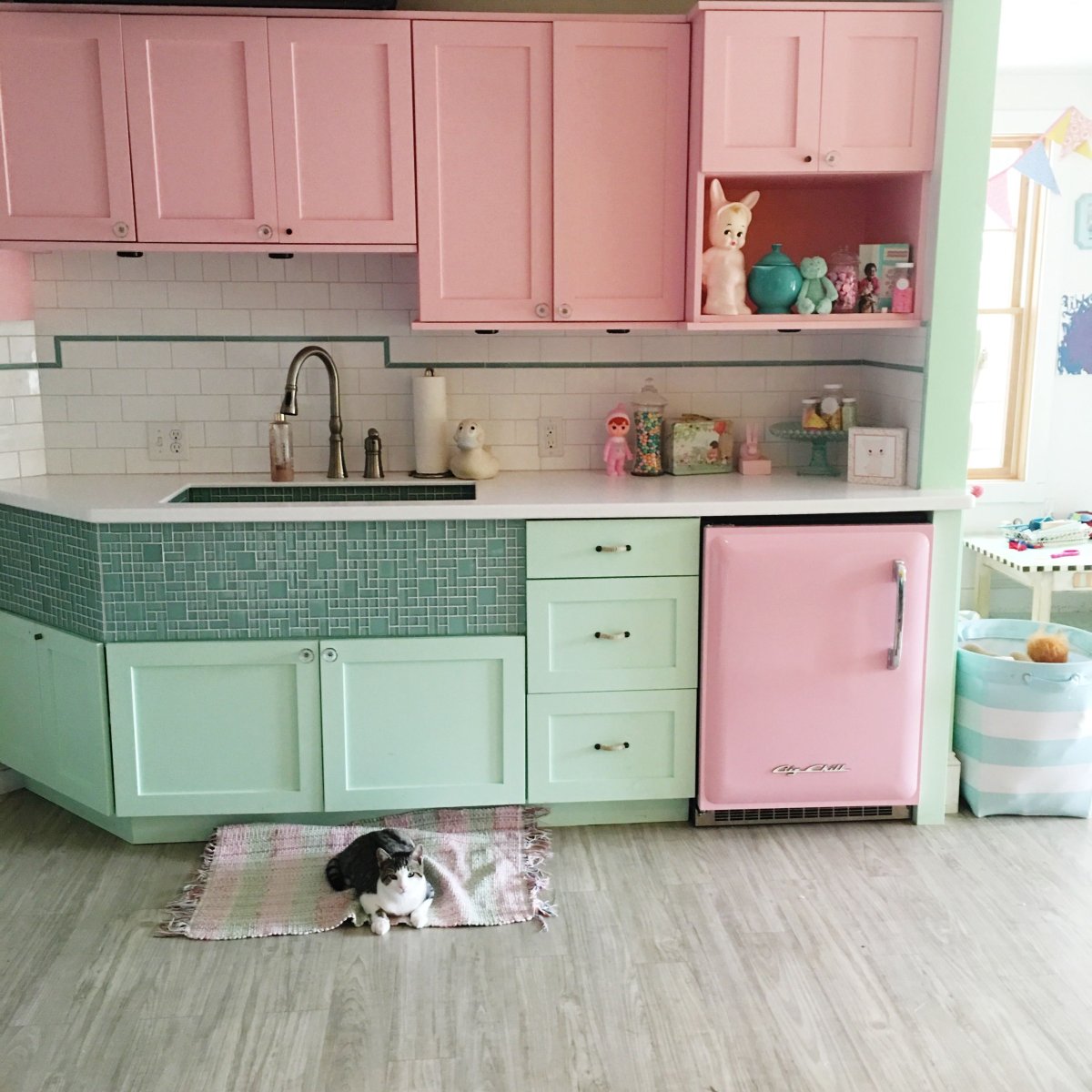 56. Кухня в мятно розовых тонах
