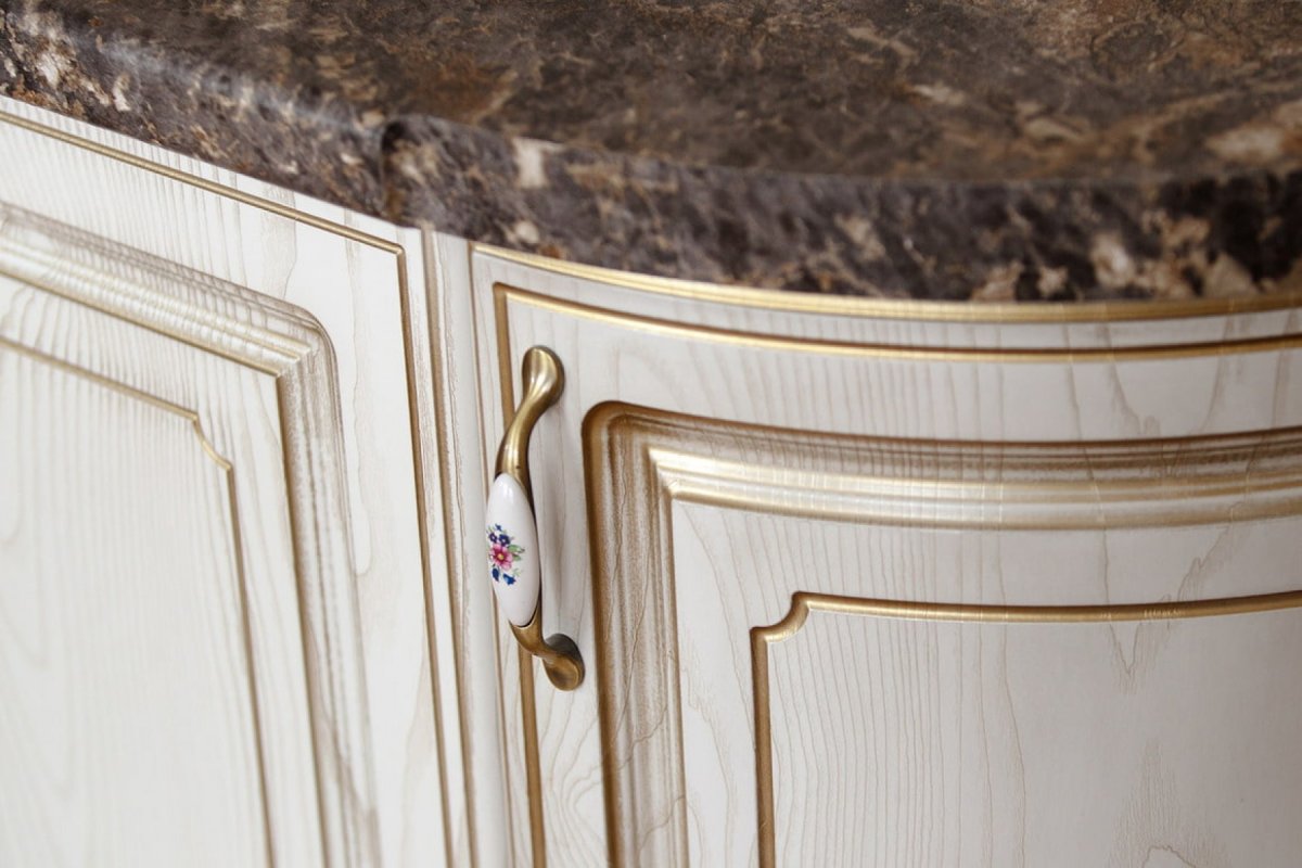 Фото: Кухня Ника в массиве ясеня кремовый с золотой патиной