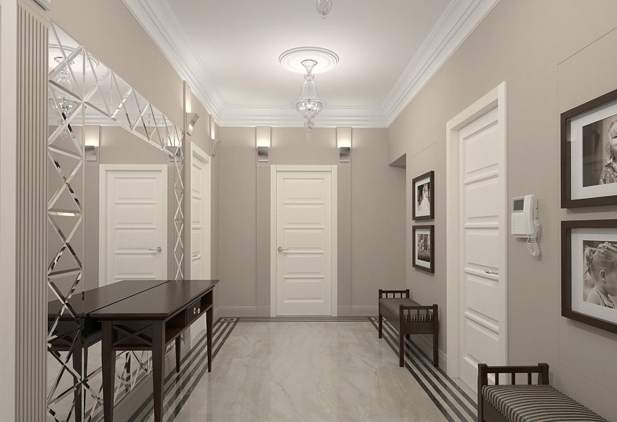 8. Интерьер коридора в серых тонах в классическом стиле