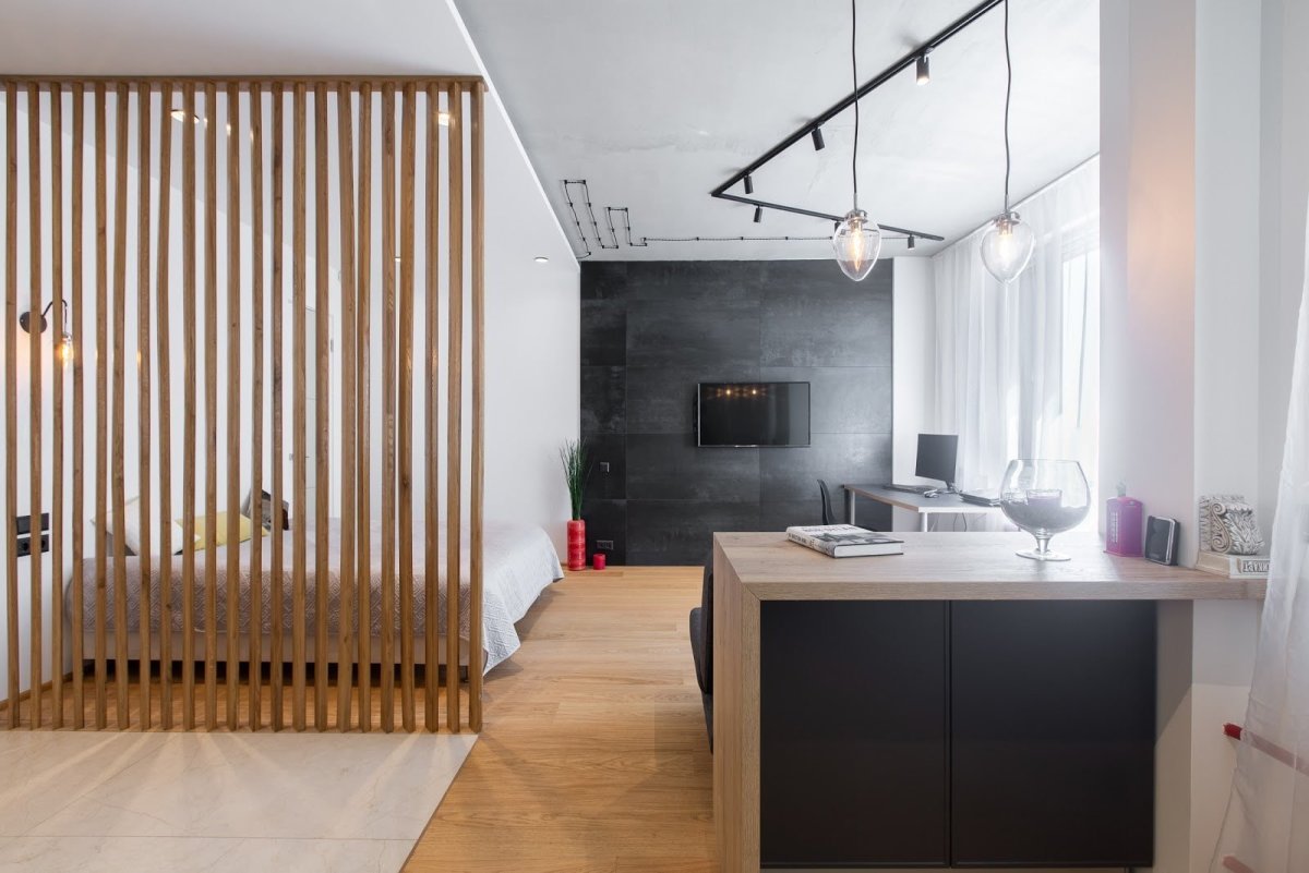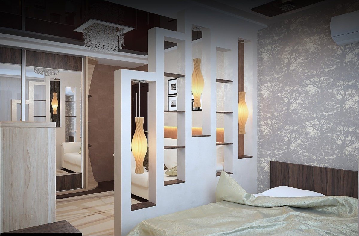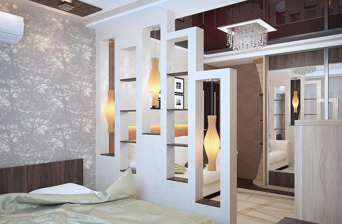 13. Спальня гостиная зонирование рейками