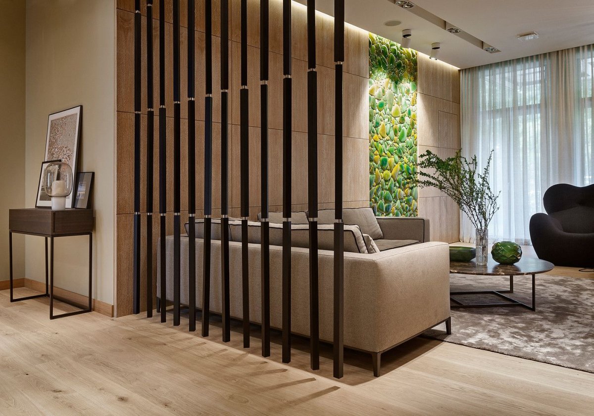 20. Гостиная с реечной перегородкой