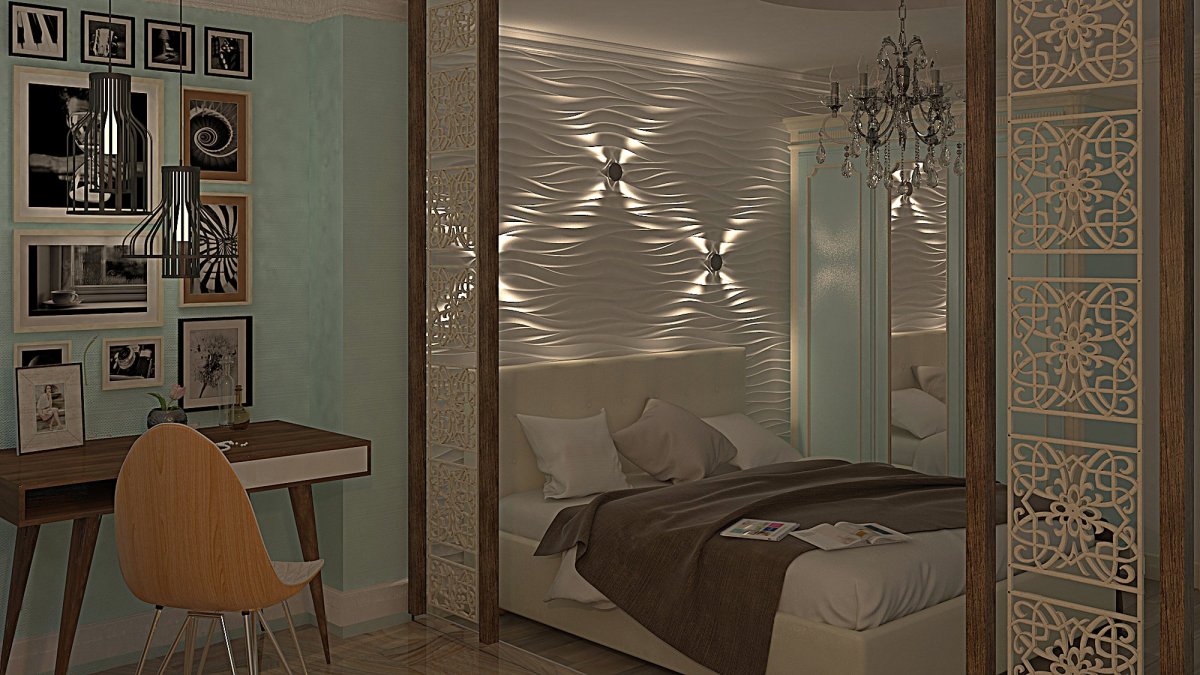52. Спальня с перегородкой декоративной
