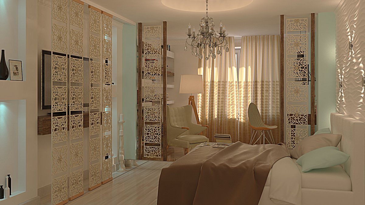 36. Спальня с перегородкой декоративной