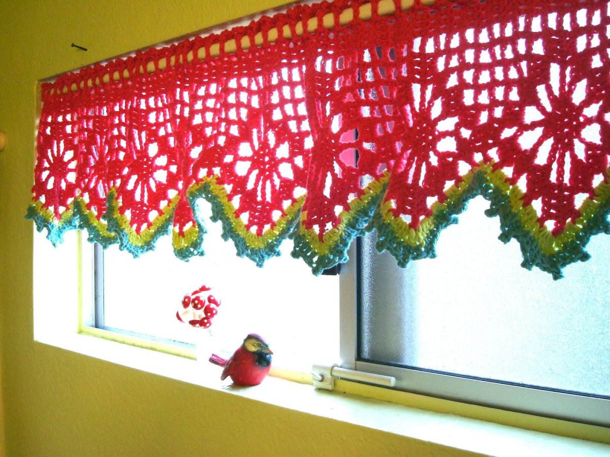 50. Цветная вязаная штора на кухню