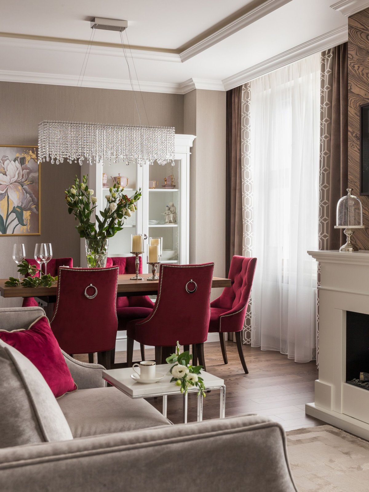 56. Столовая в бордовых тонах