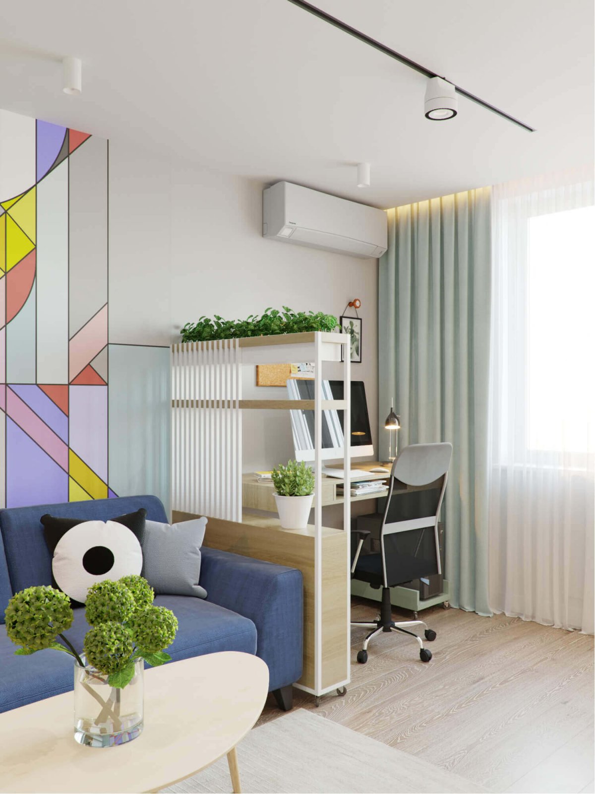 9. Зонирование рабочего места в гостиной