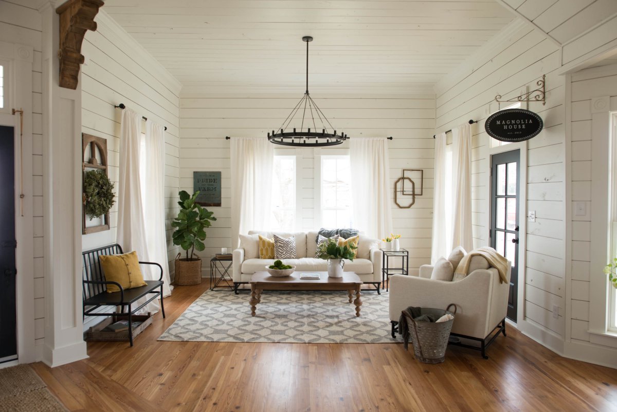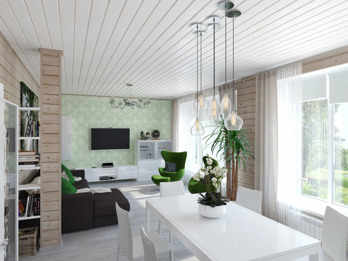 37. Гостиная белая вагонка