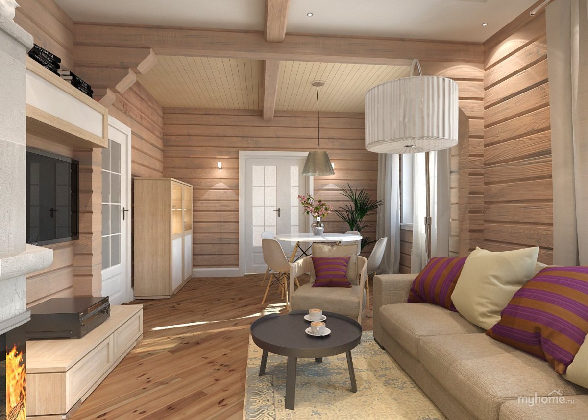 18. Интерьер гостиной стеной из бруса
