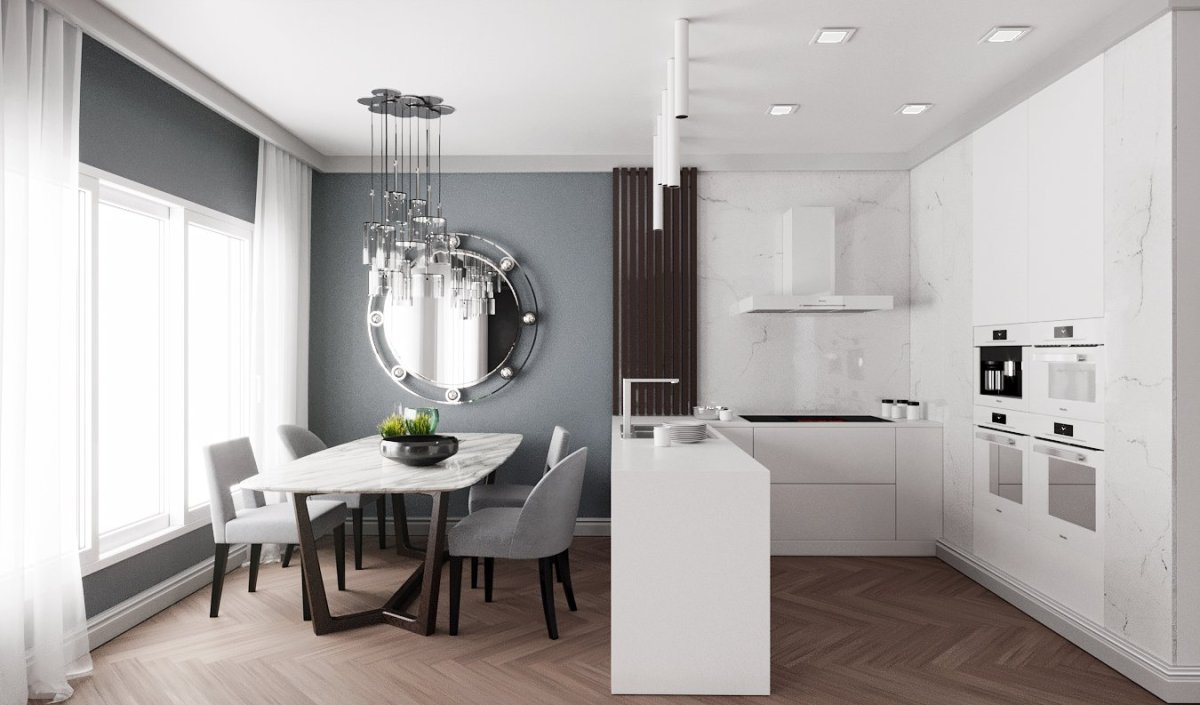 29. Дизайн кухни гостиной в современном стиле 50 км