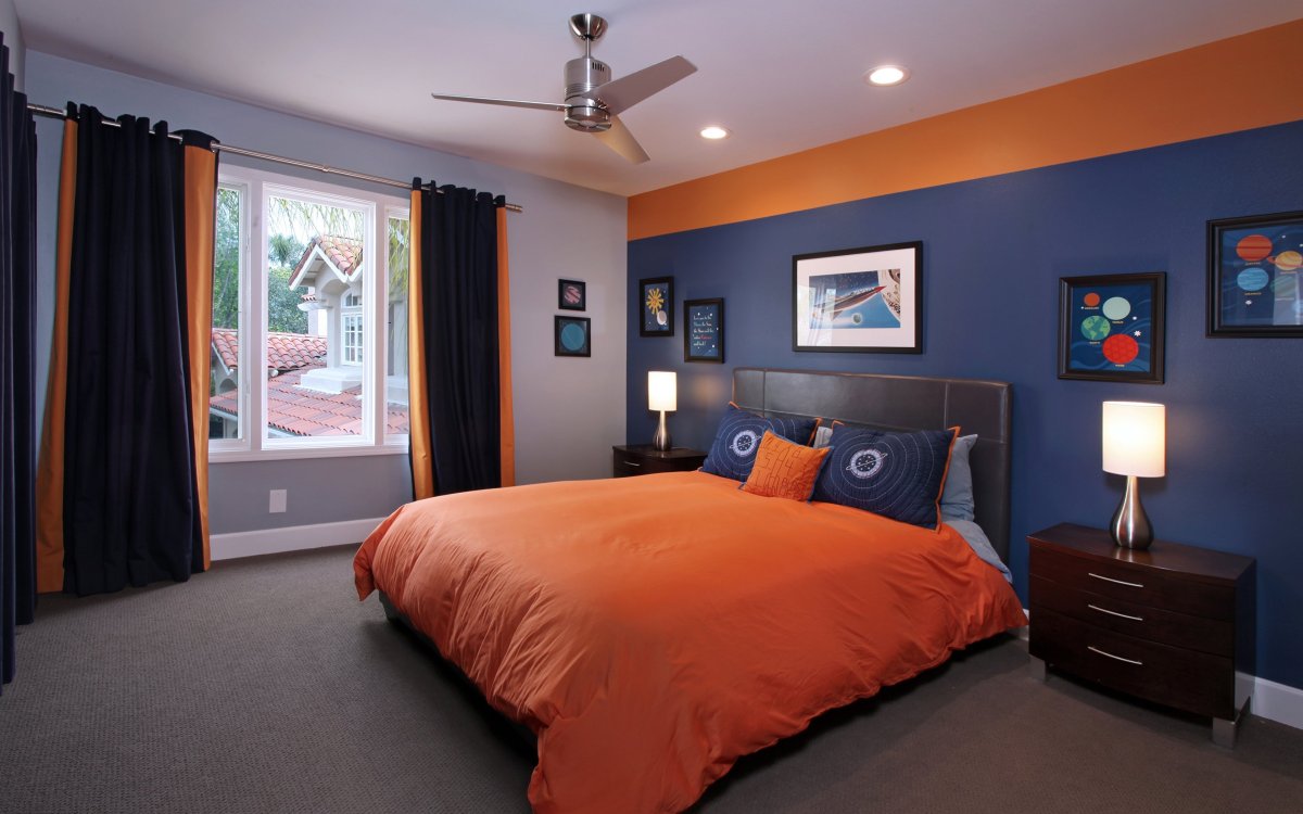 41. Спальня в сине оранжевых тонах