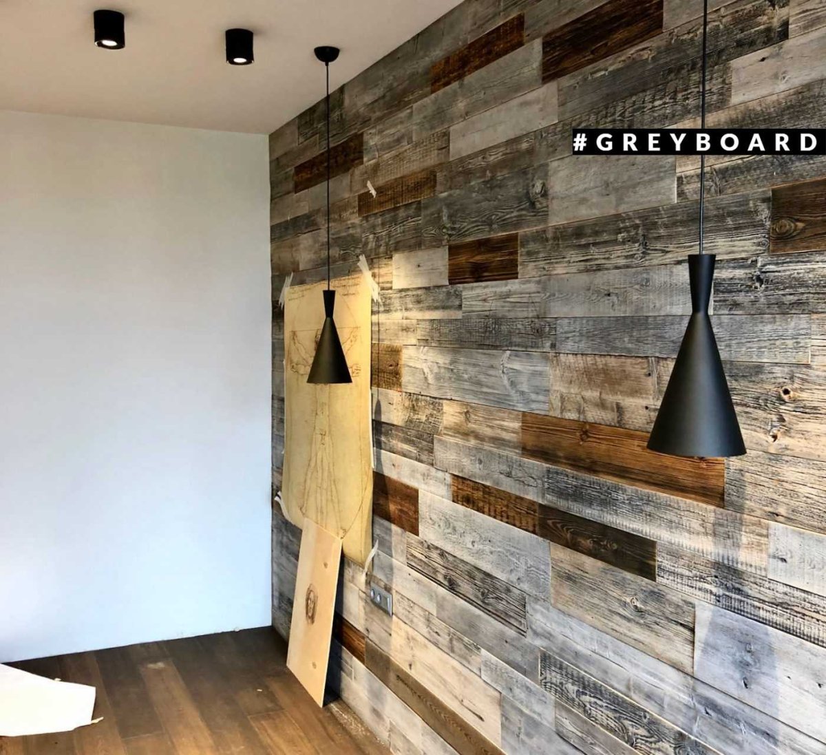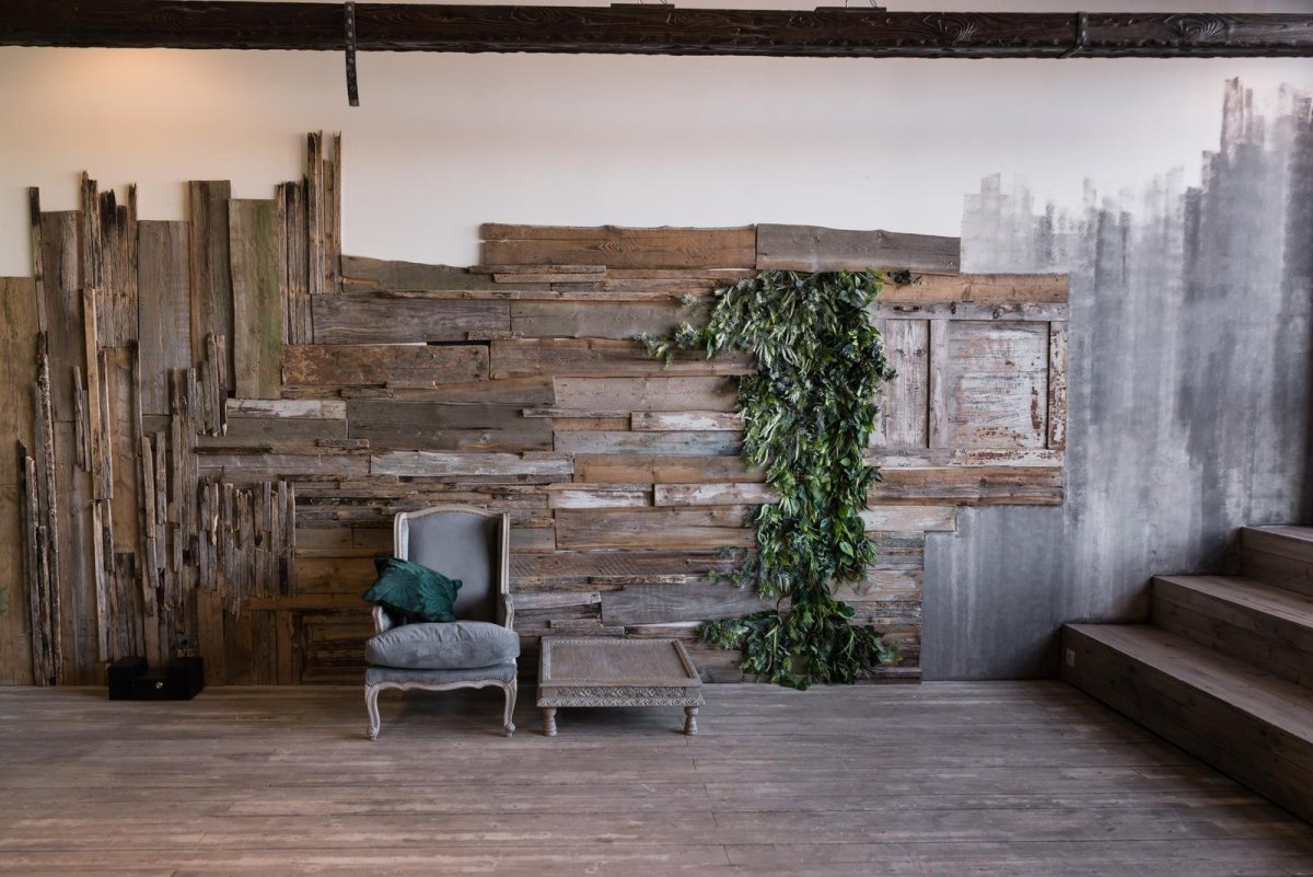 Фото: Фотообои под амбарную доску в интерьере комнаты