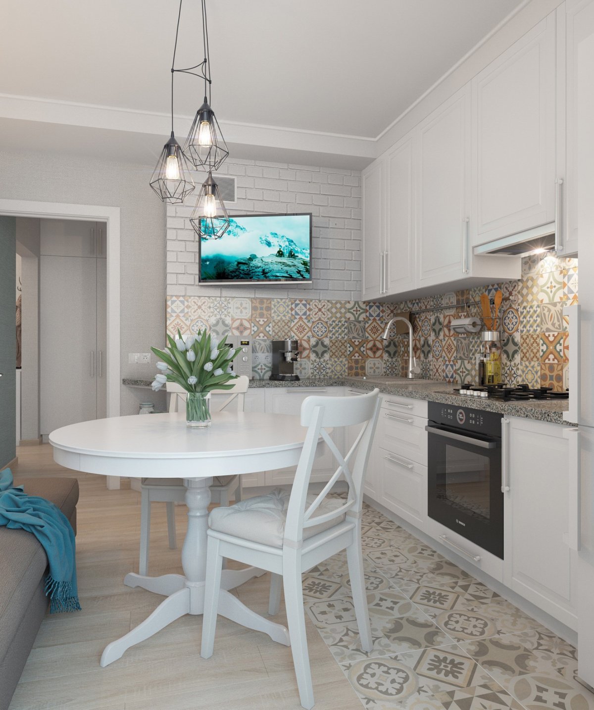 Фото: Кухня в скандинавском стиле с телевизором