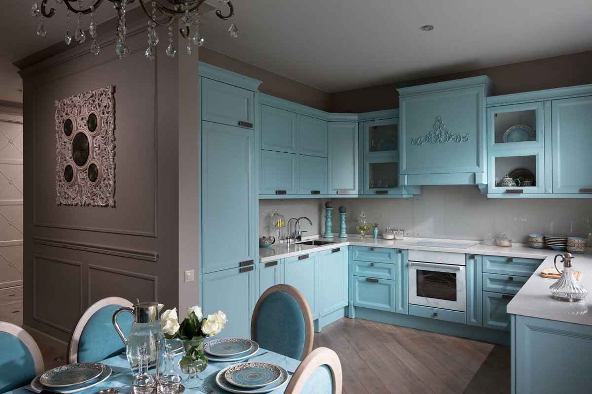 61. Голубая кухня в классическом стиле