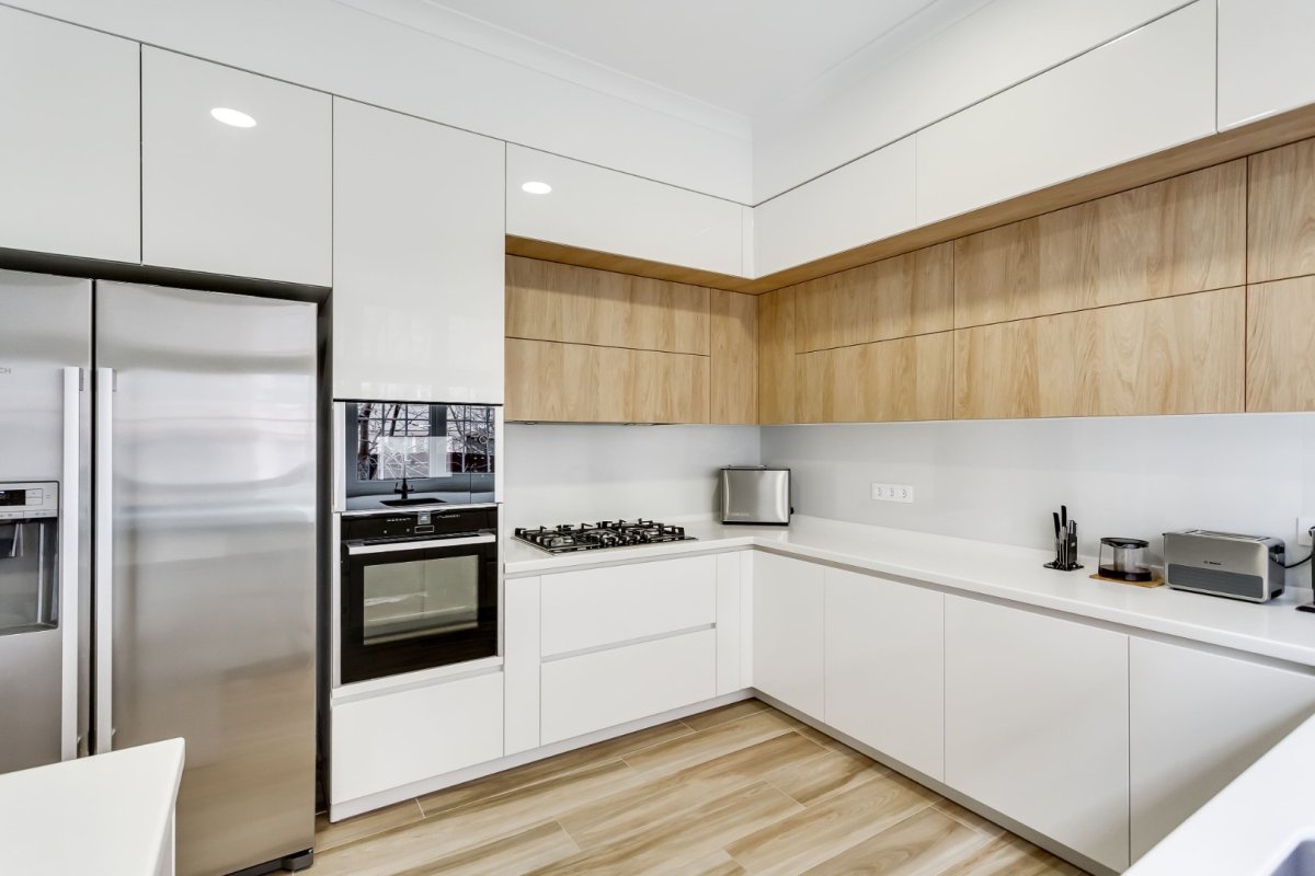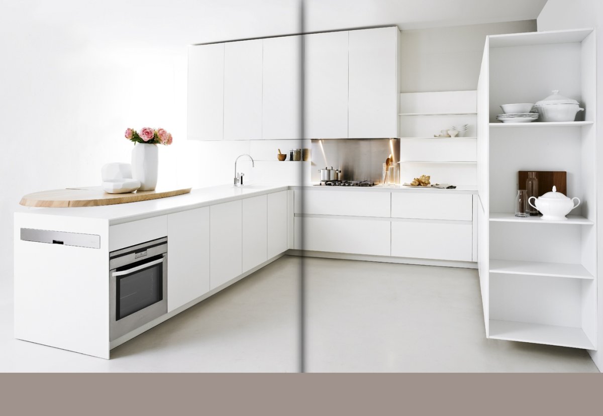 Фото: Кухня белая матовая с интегрированной ручкой двухрядная