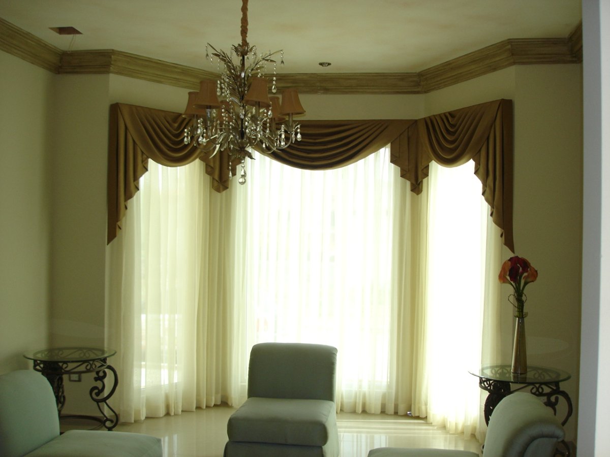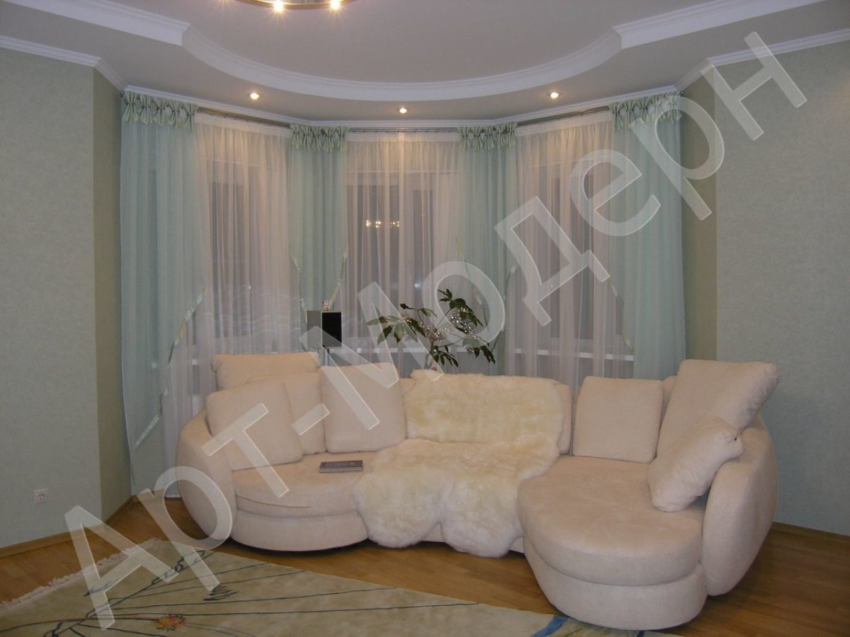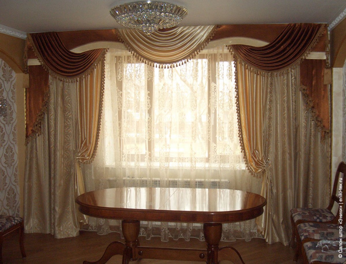 20. Шторы с ламбрекеном в гостиную классика на эркерное окно