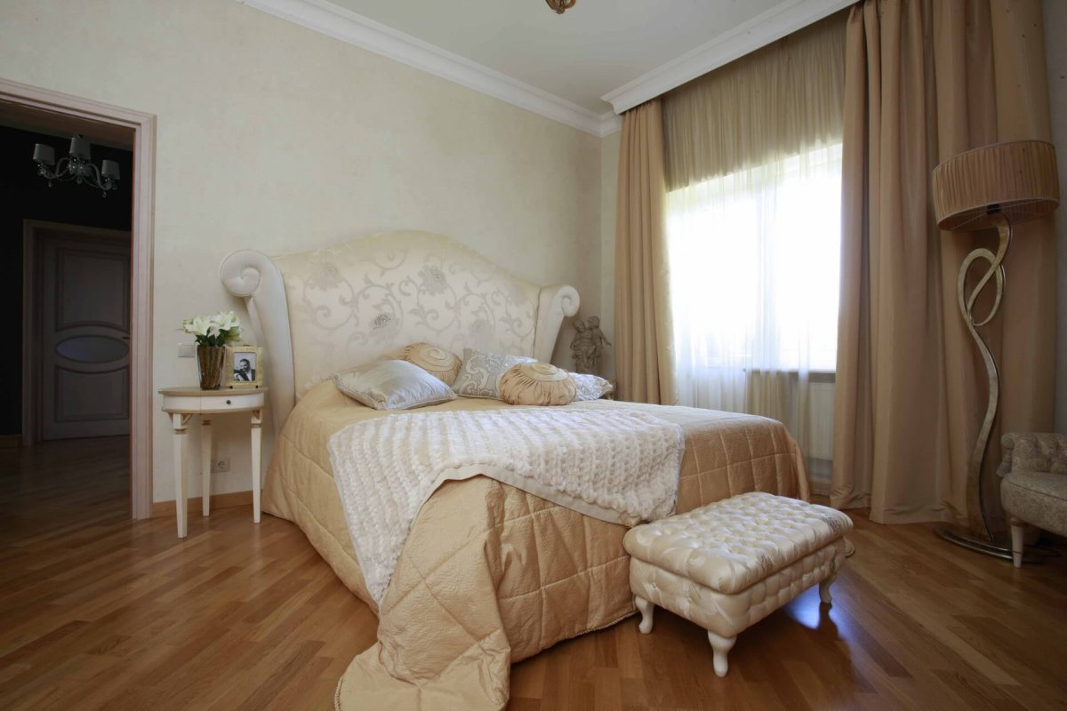 27. Спальня в золотисто бежевых тонах