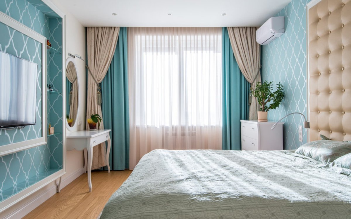 Фото: Бежево бирюзовая спальня