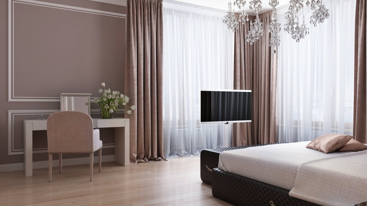 10. Шторы для спальни в бежевых тонах