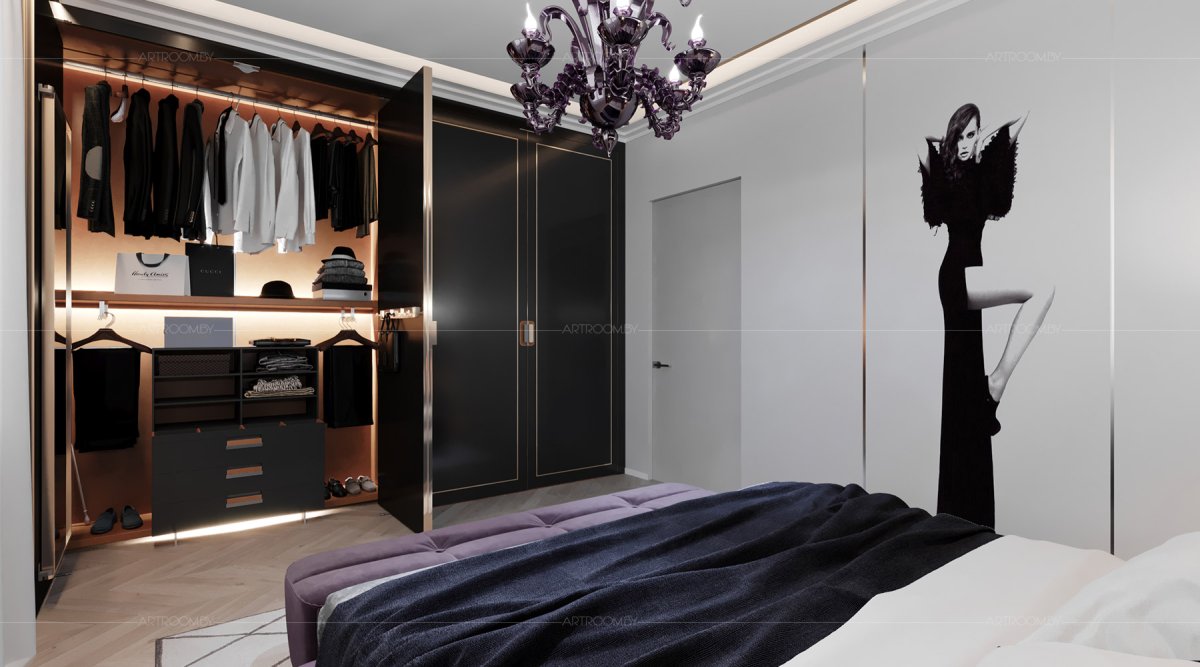 31. Черно белая мебель в спальне