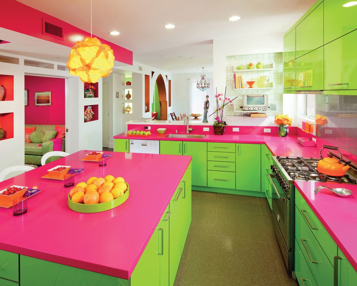 3. Кухня в зелено розовых тонах