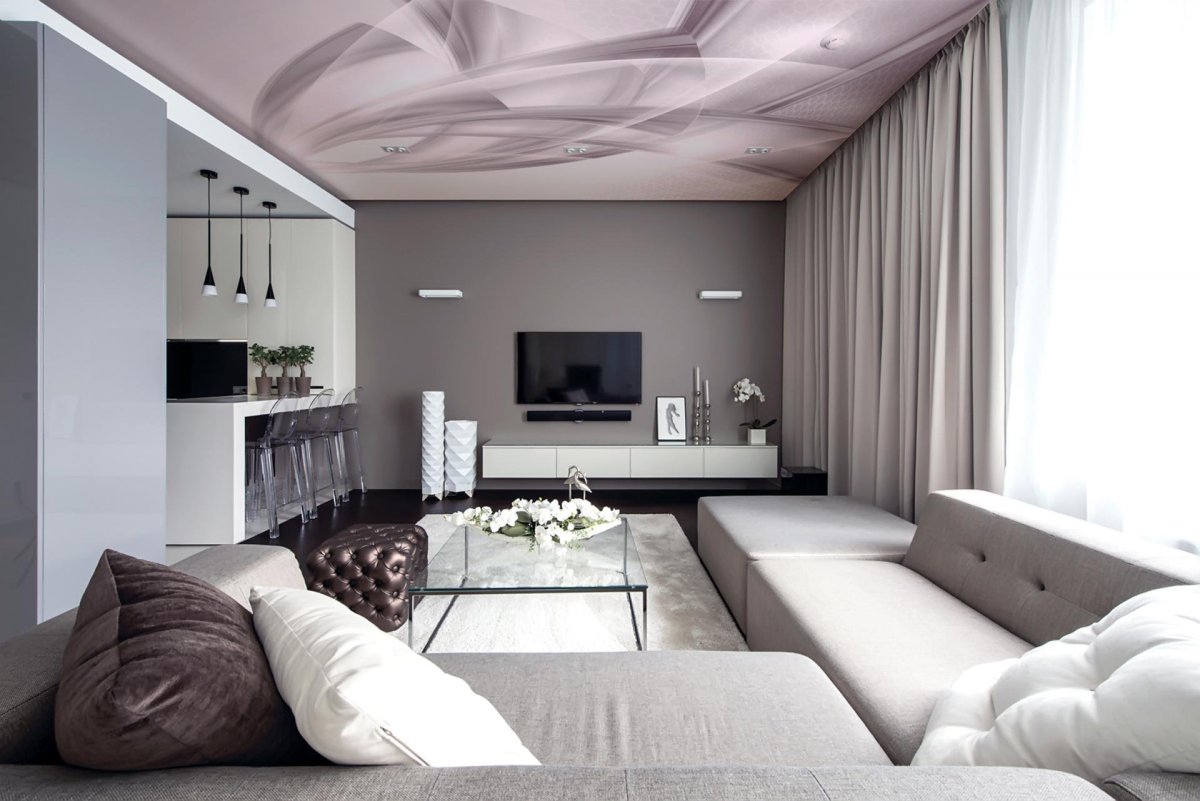 57. Потолок в зале серо белый