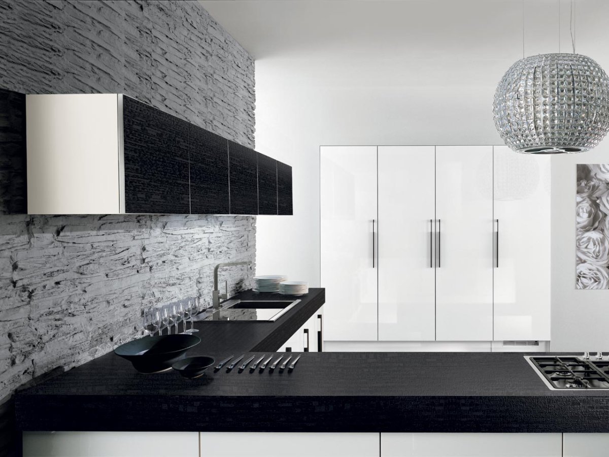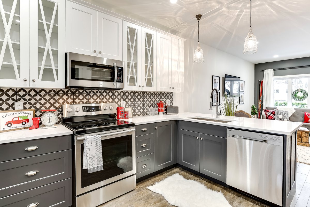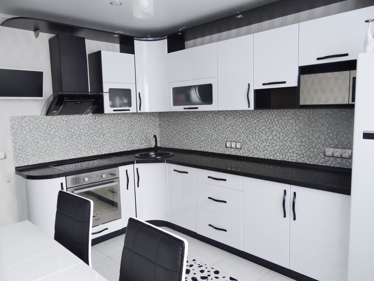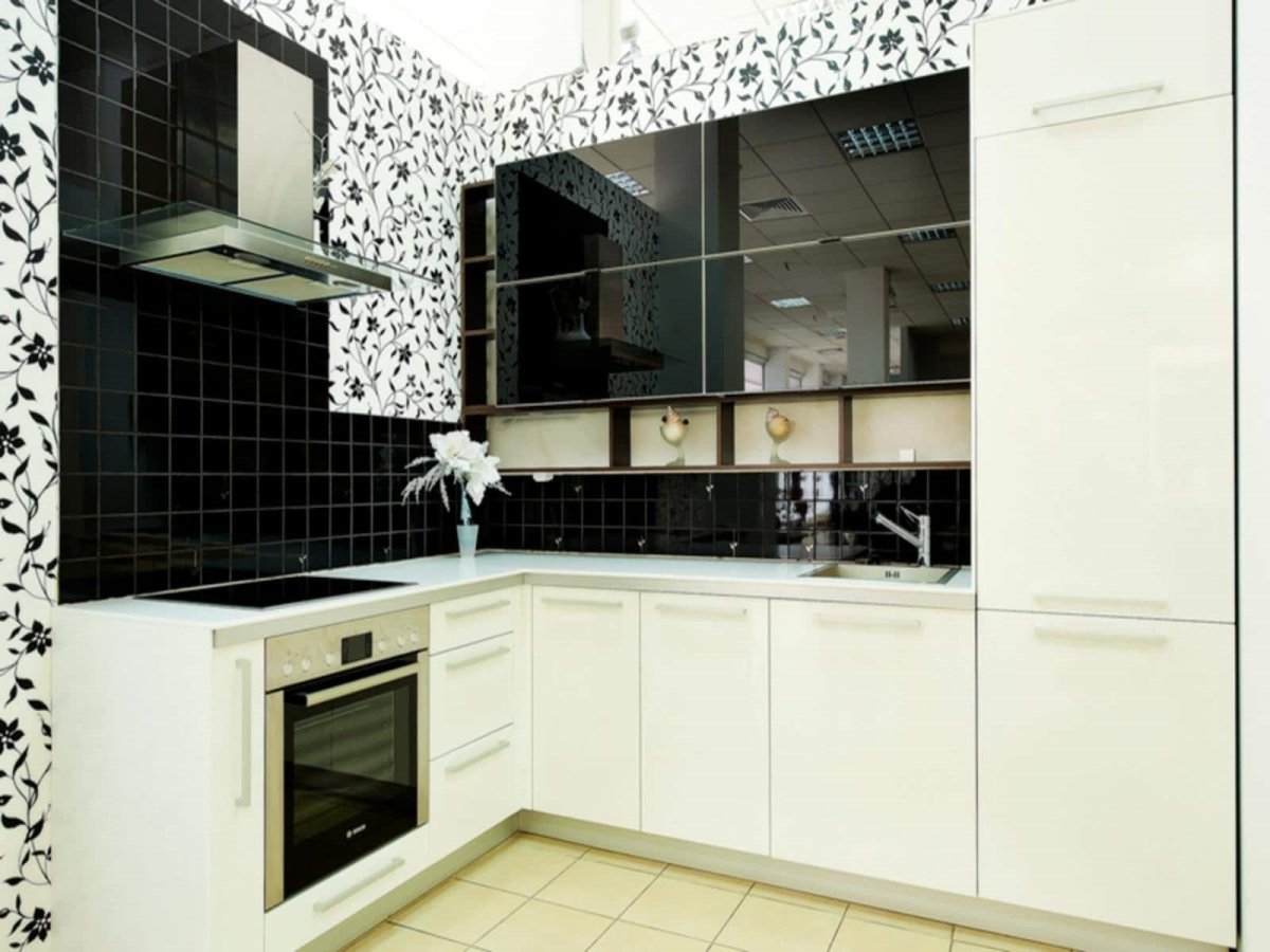 40. Белая кухня с черной столешницей в скандинавском стиле
