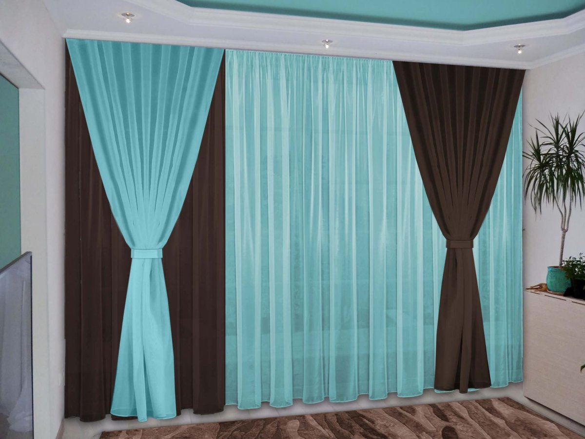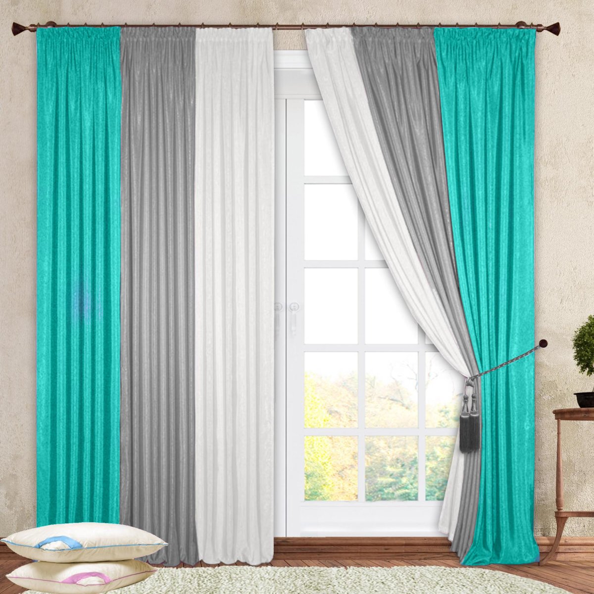 26. Комплект штор Латур, белый, бирюзовый, 240*270 см (BL-100671)