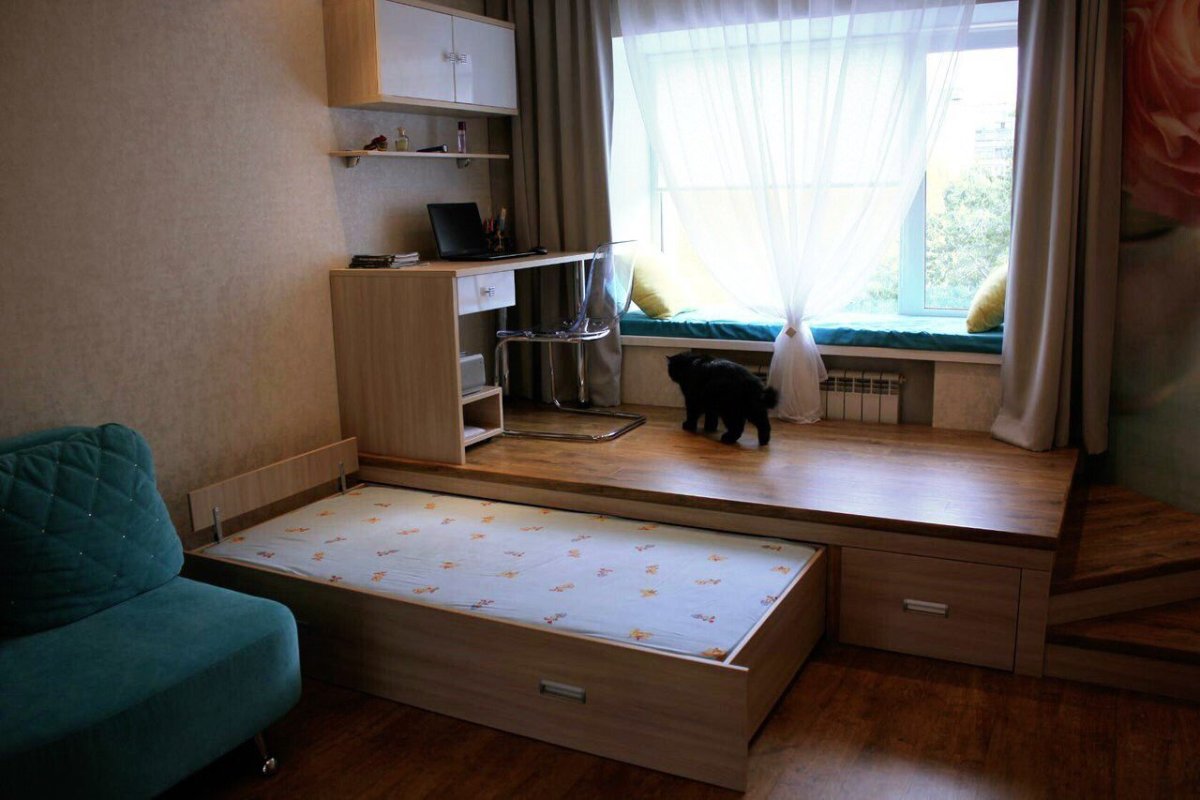 68. Подиум в детской с выкатной кроватью в хрущевке