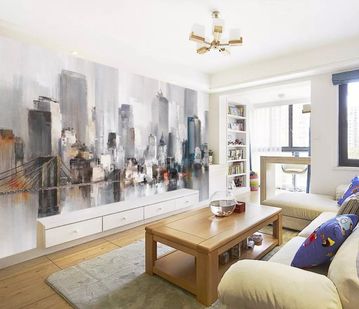 33. Фреска в гостиной в современном стиле