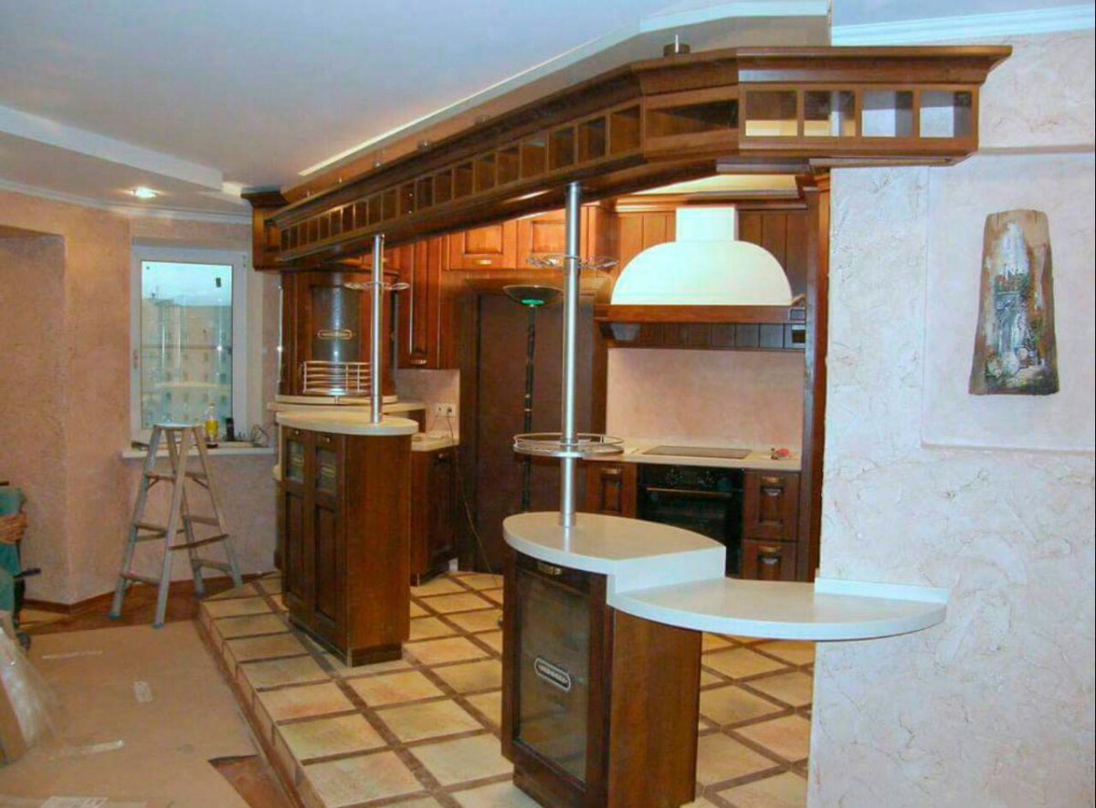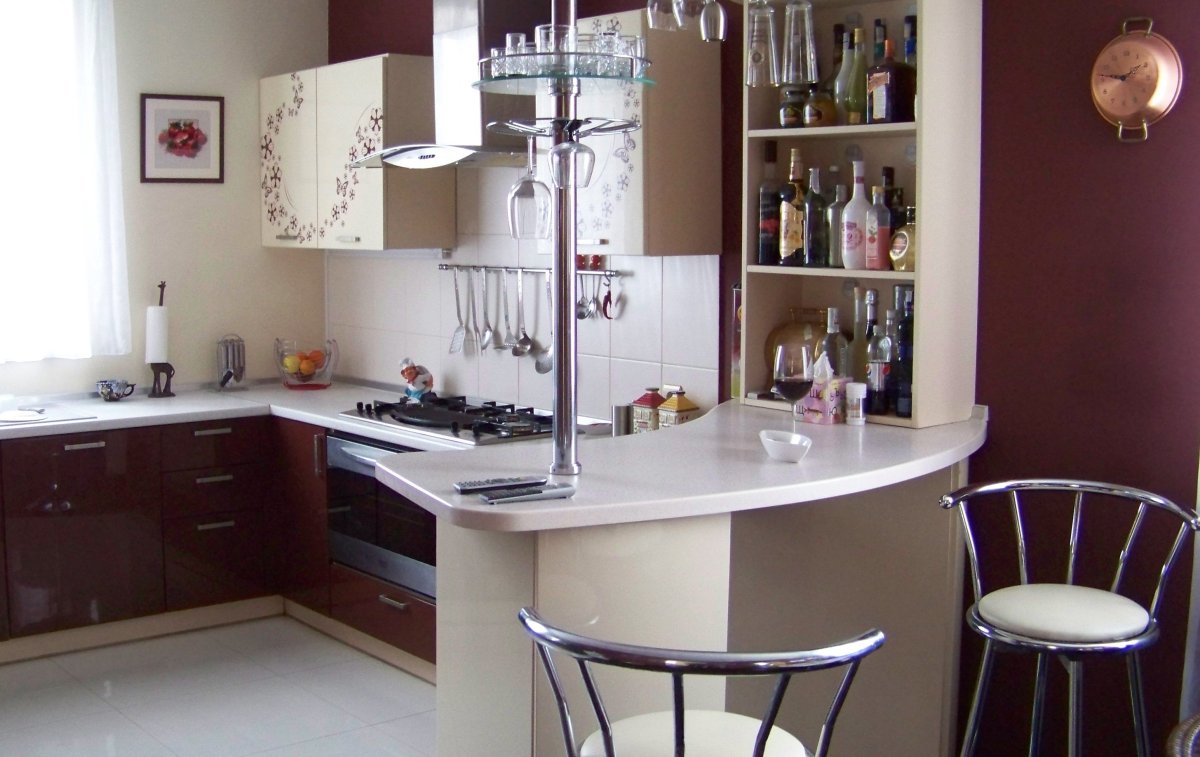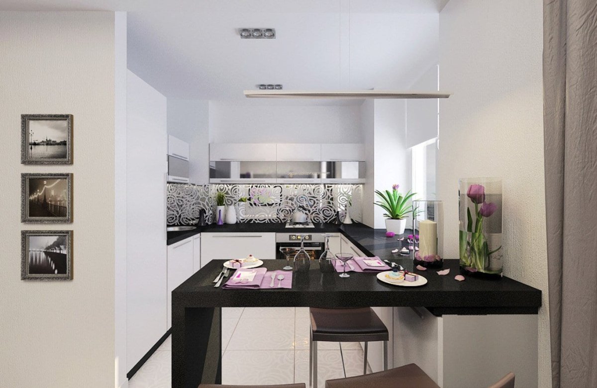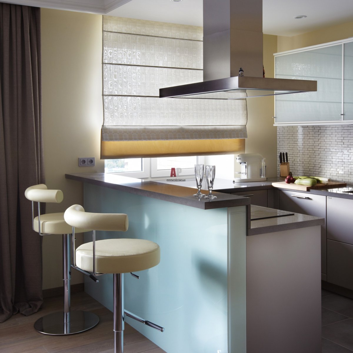 7. Интерьер кухни в доме 20 квадратов с барной стойкой