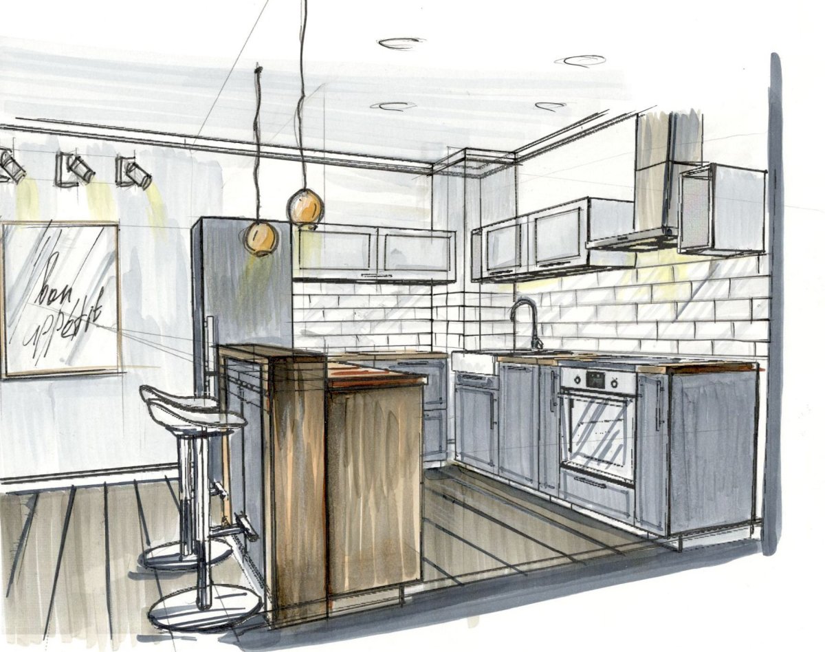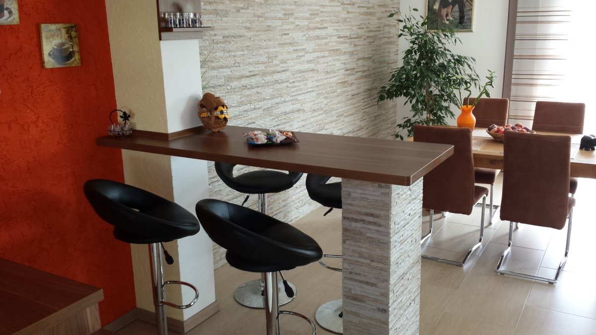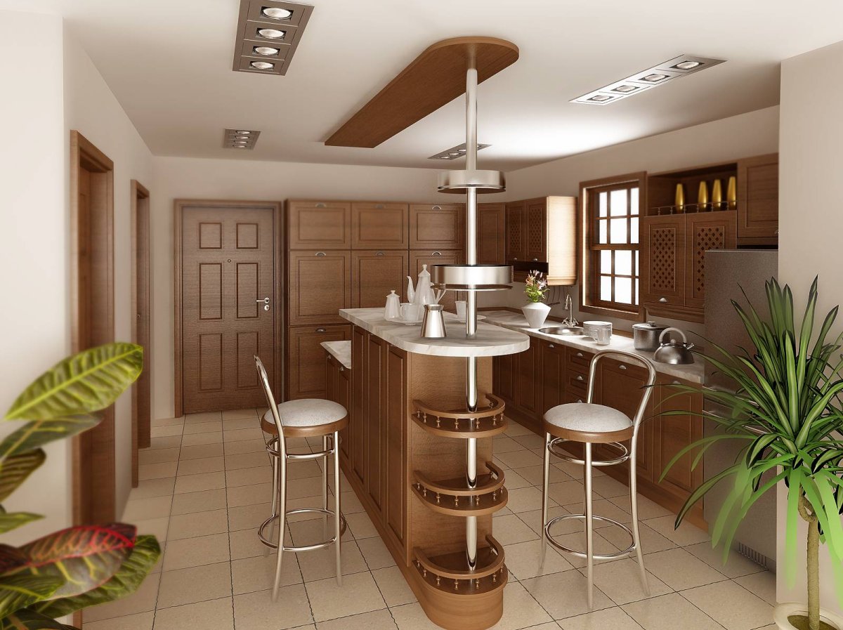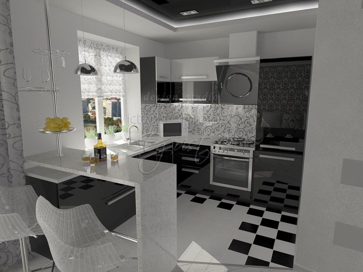 7. Интерьер кухни в доме 20 квадратов с барной стойкой