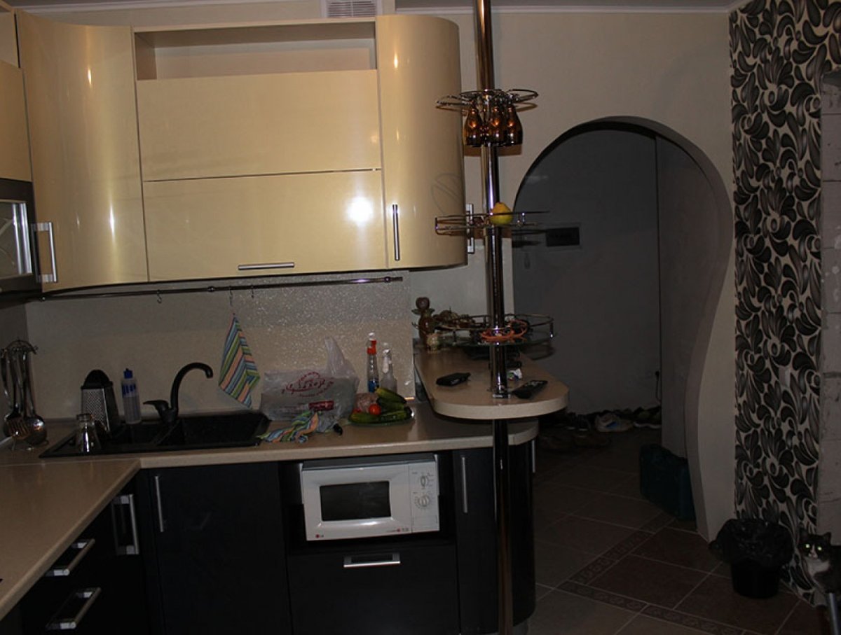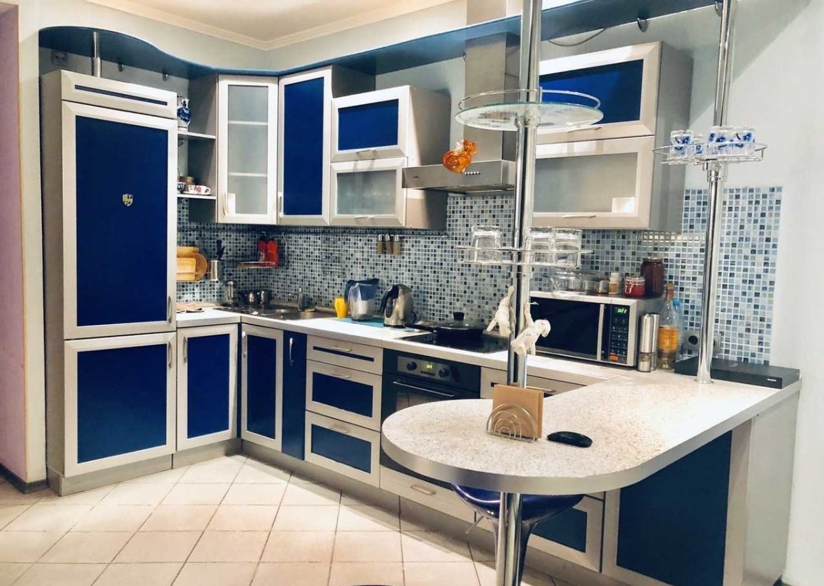 3. Кухонный гарнитур с барной стойкой на лоджии