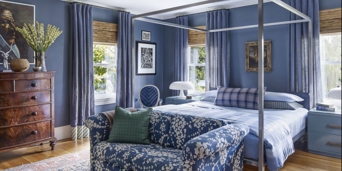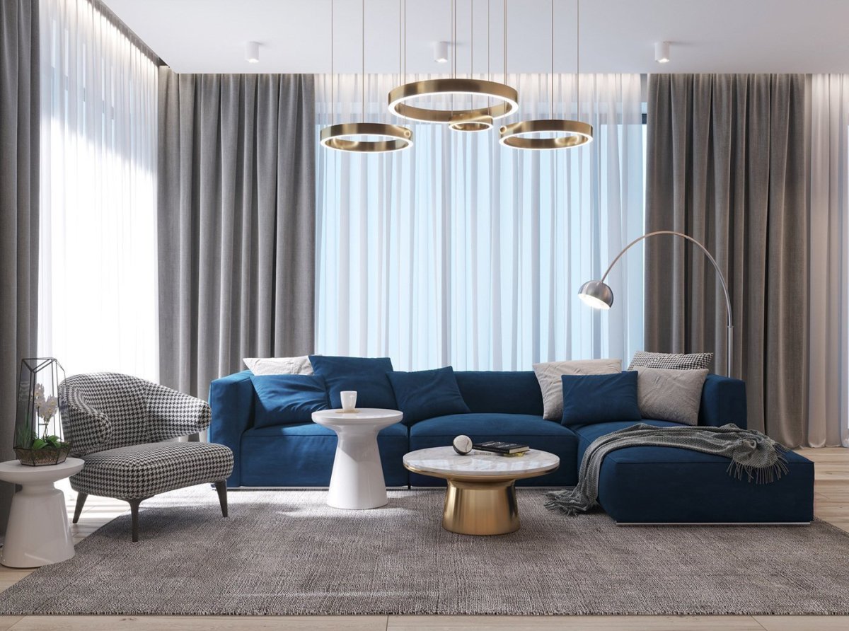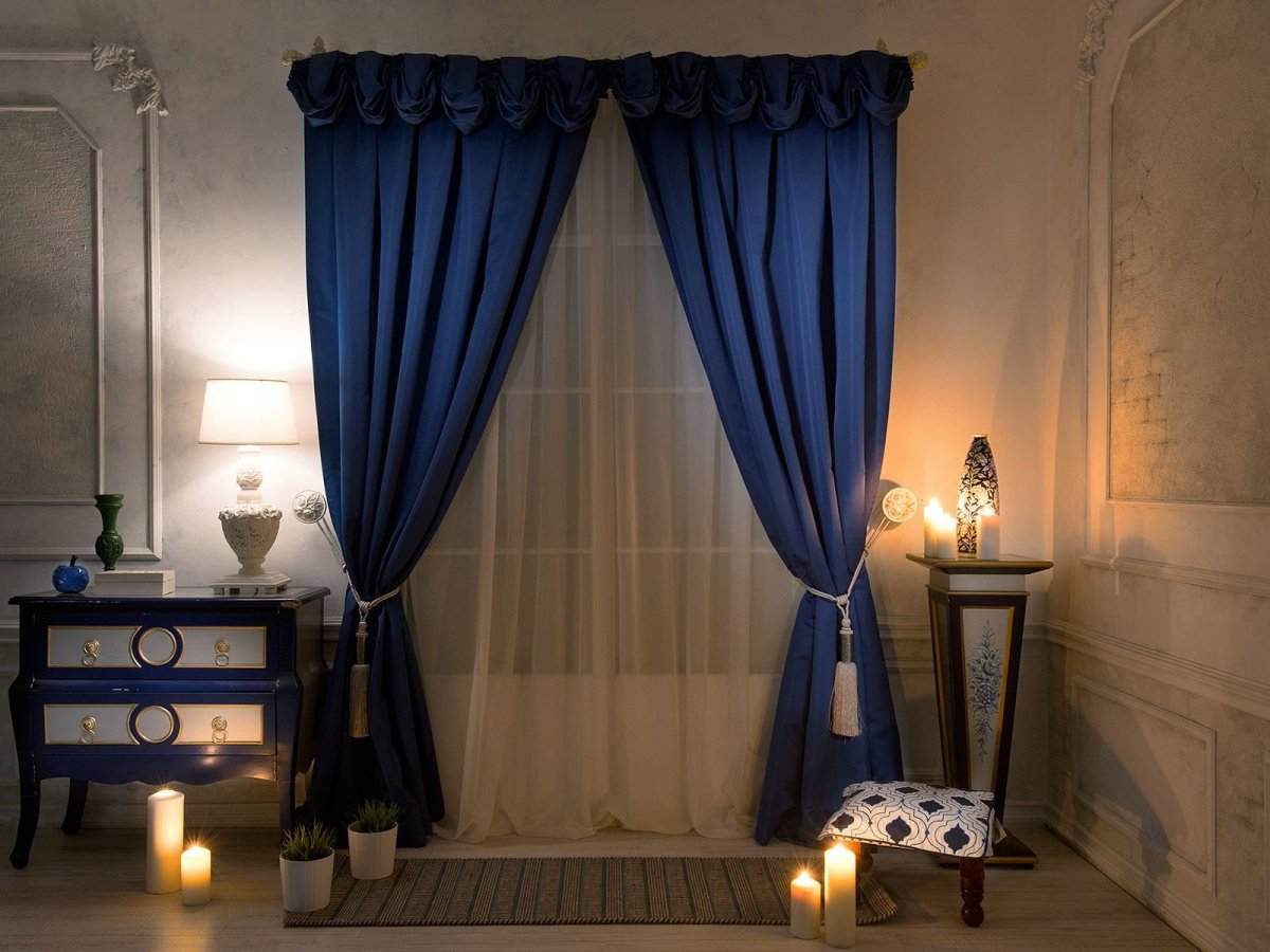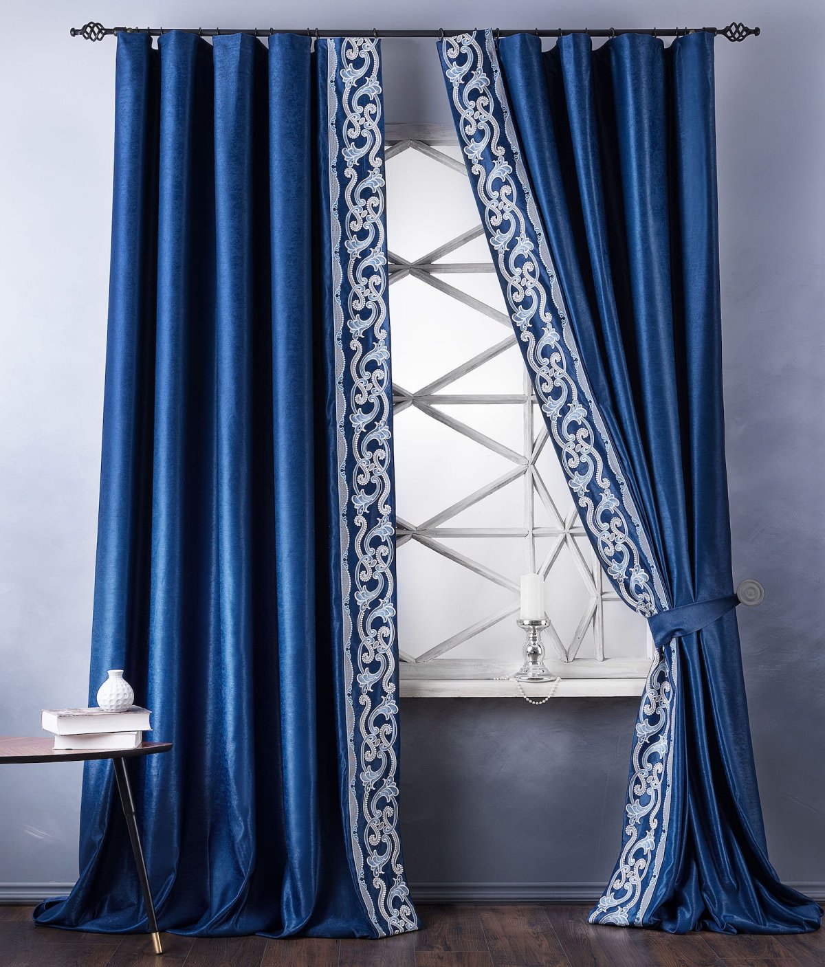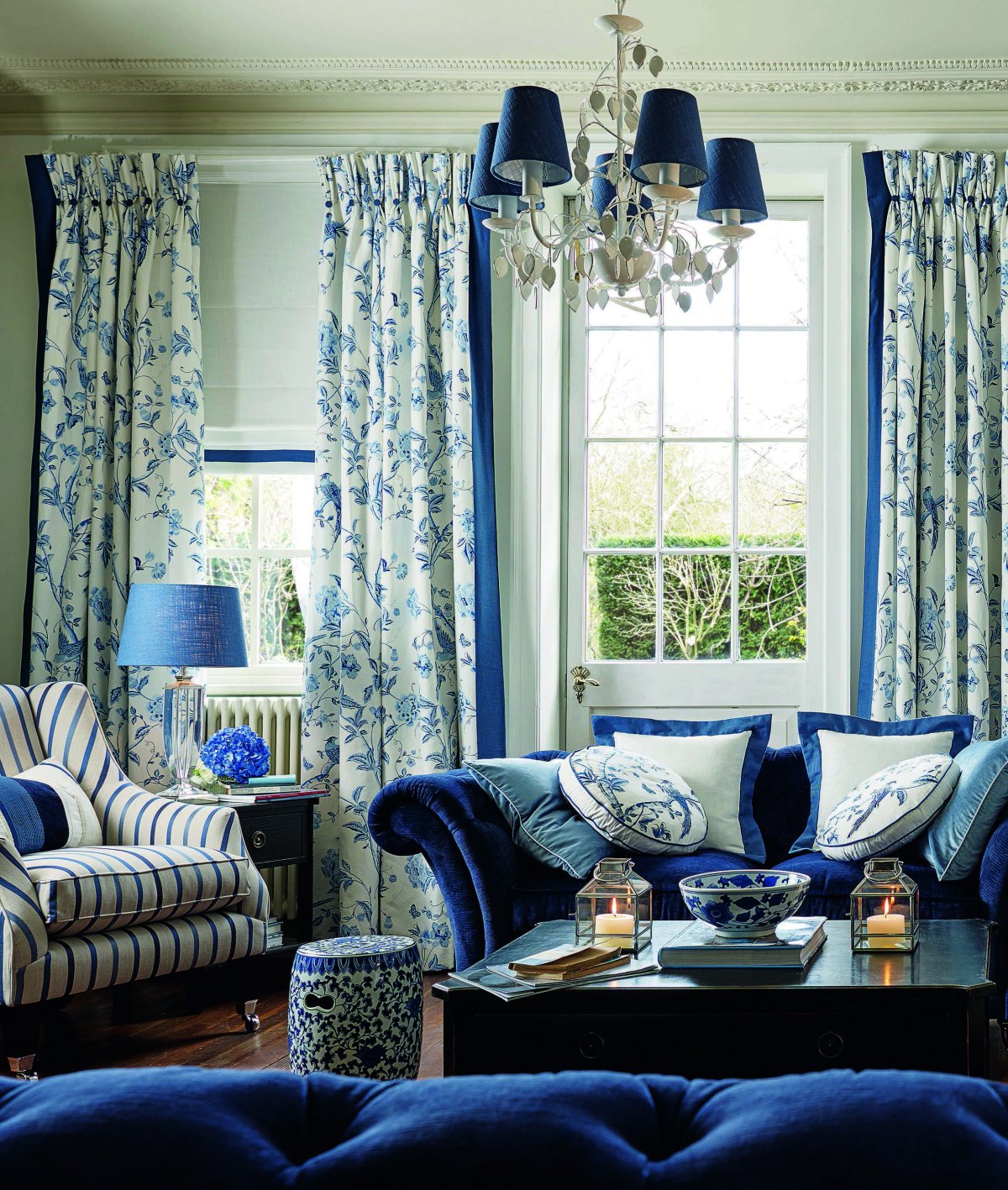 2. Синие шторы в интерьере гостиной во французском интерьере гостиной
