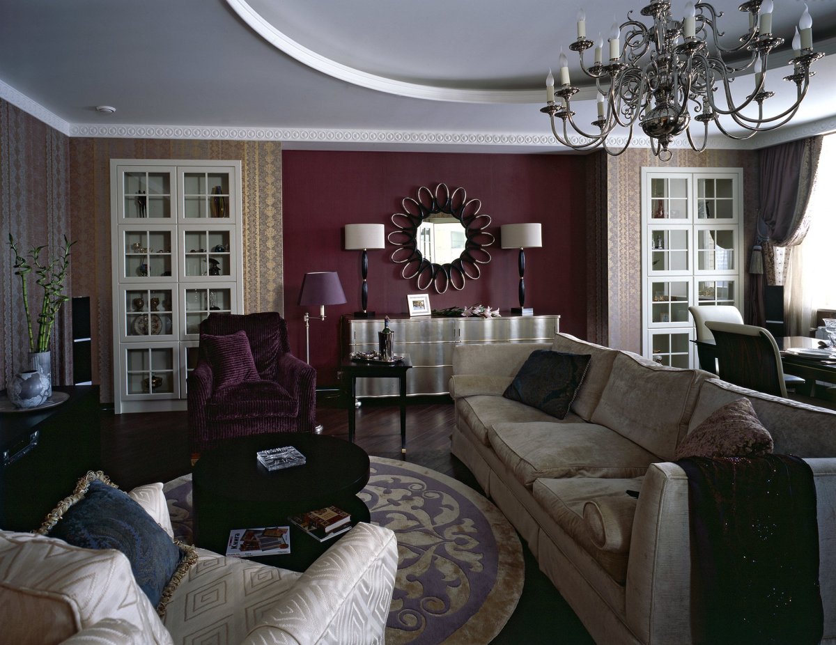 48. Винный цвет в интерьере гостиной