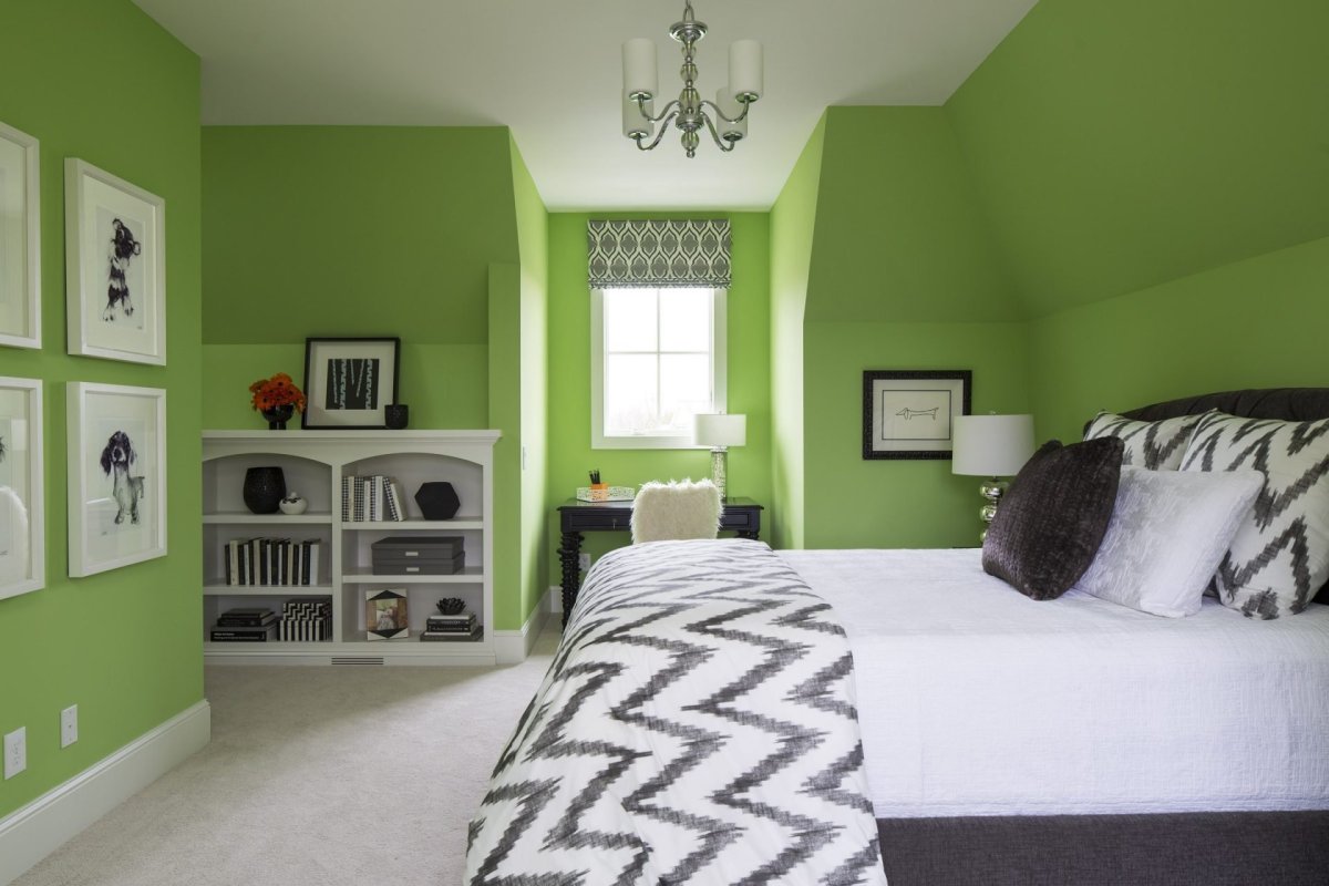 13. Зеленый цвет стен в интерьере