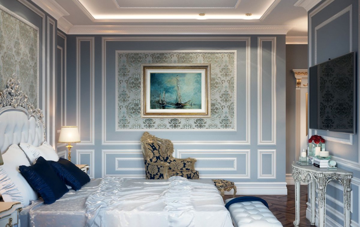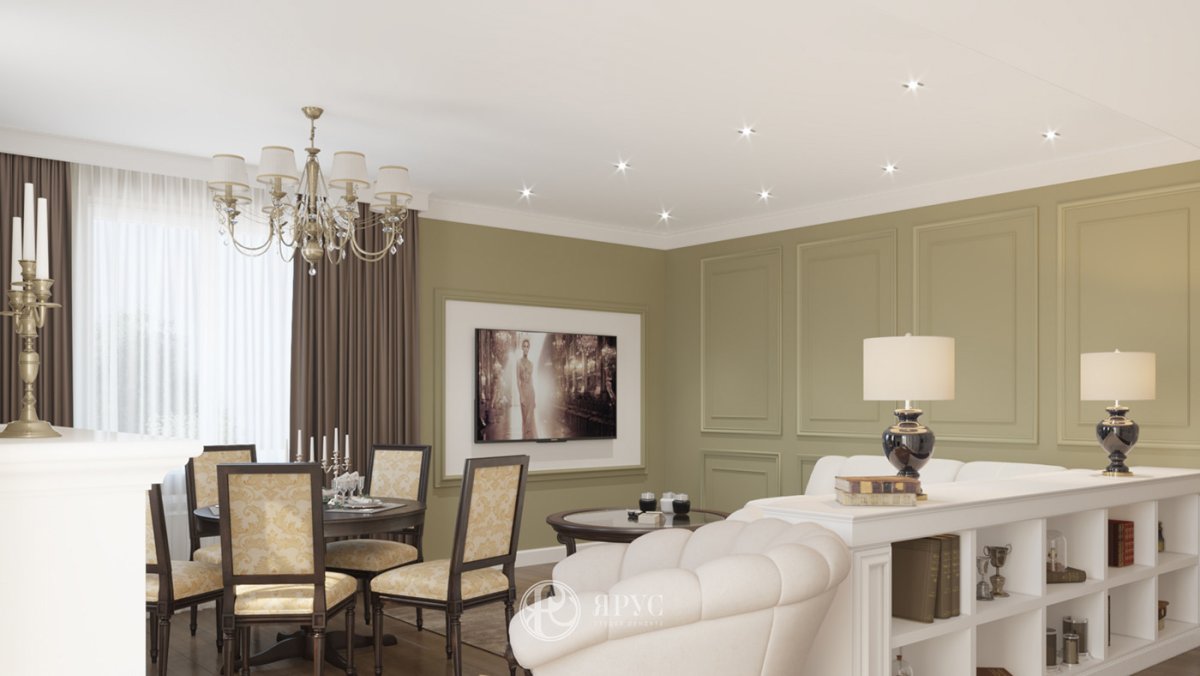 30. Линкруста в интерьере гостиной в стиле Неоклассика