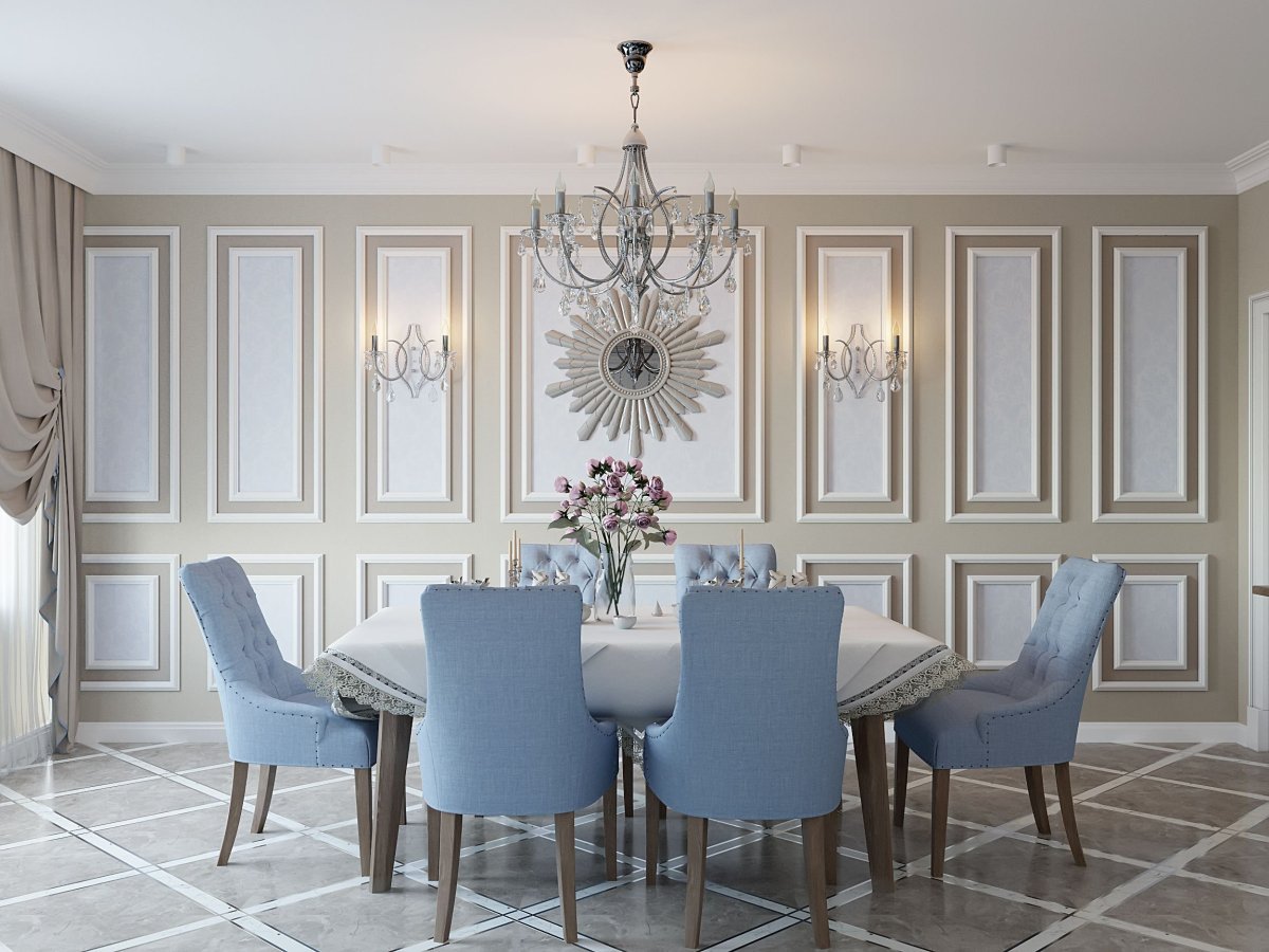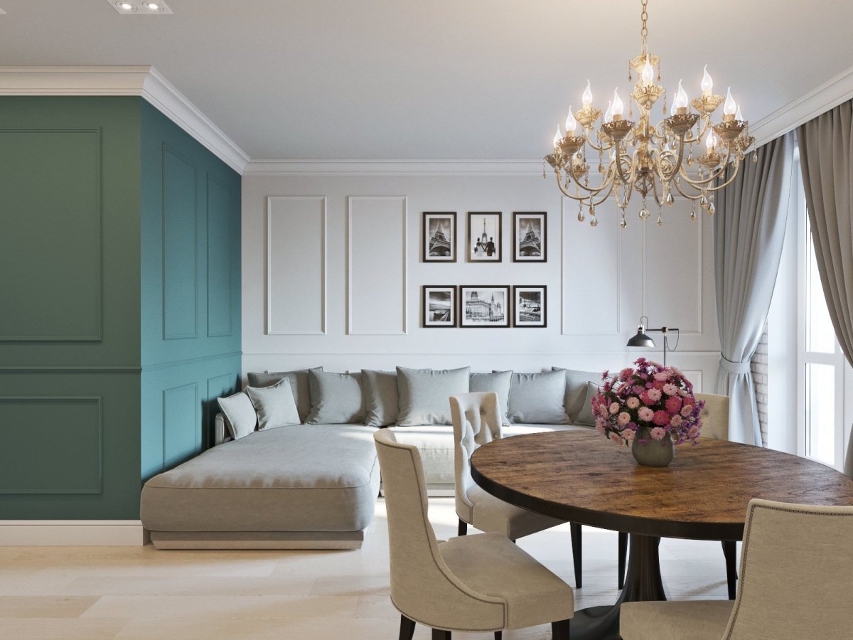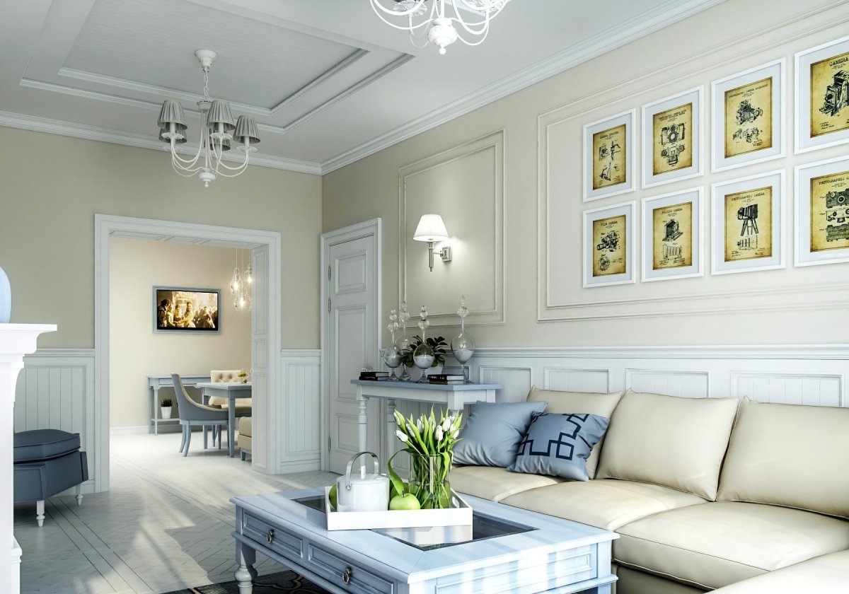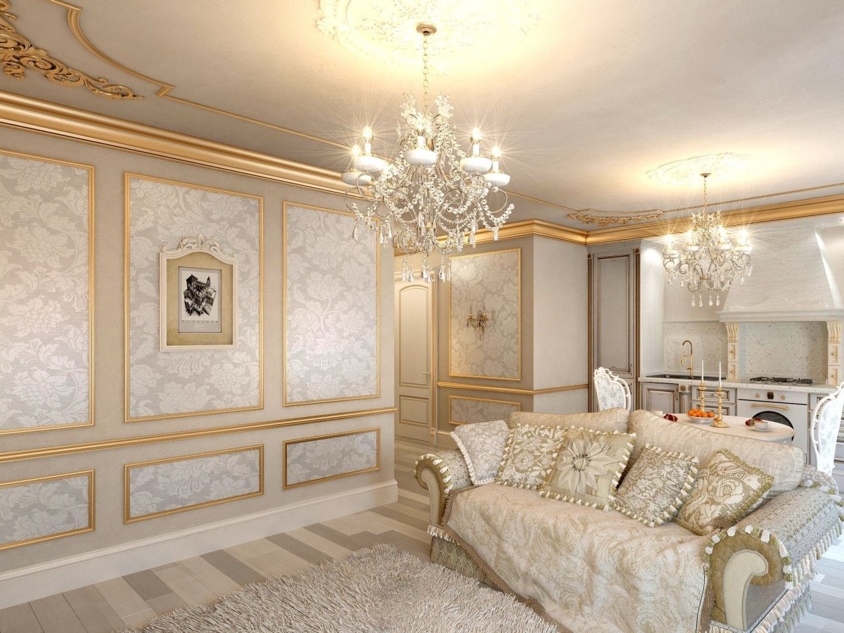 17. Молдинги для стен в интерьере гостиной в стиле Неоклассика