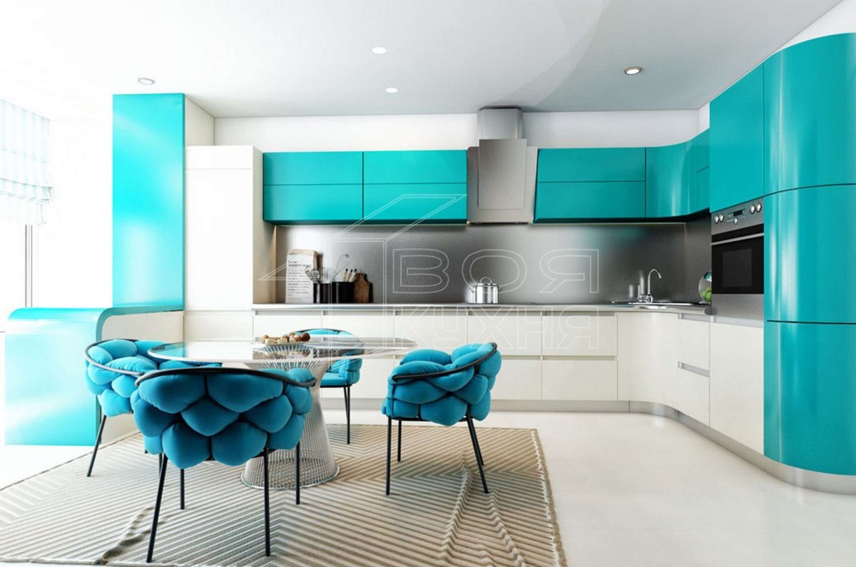 14. Кухня в современном стиле бирюза